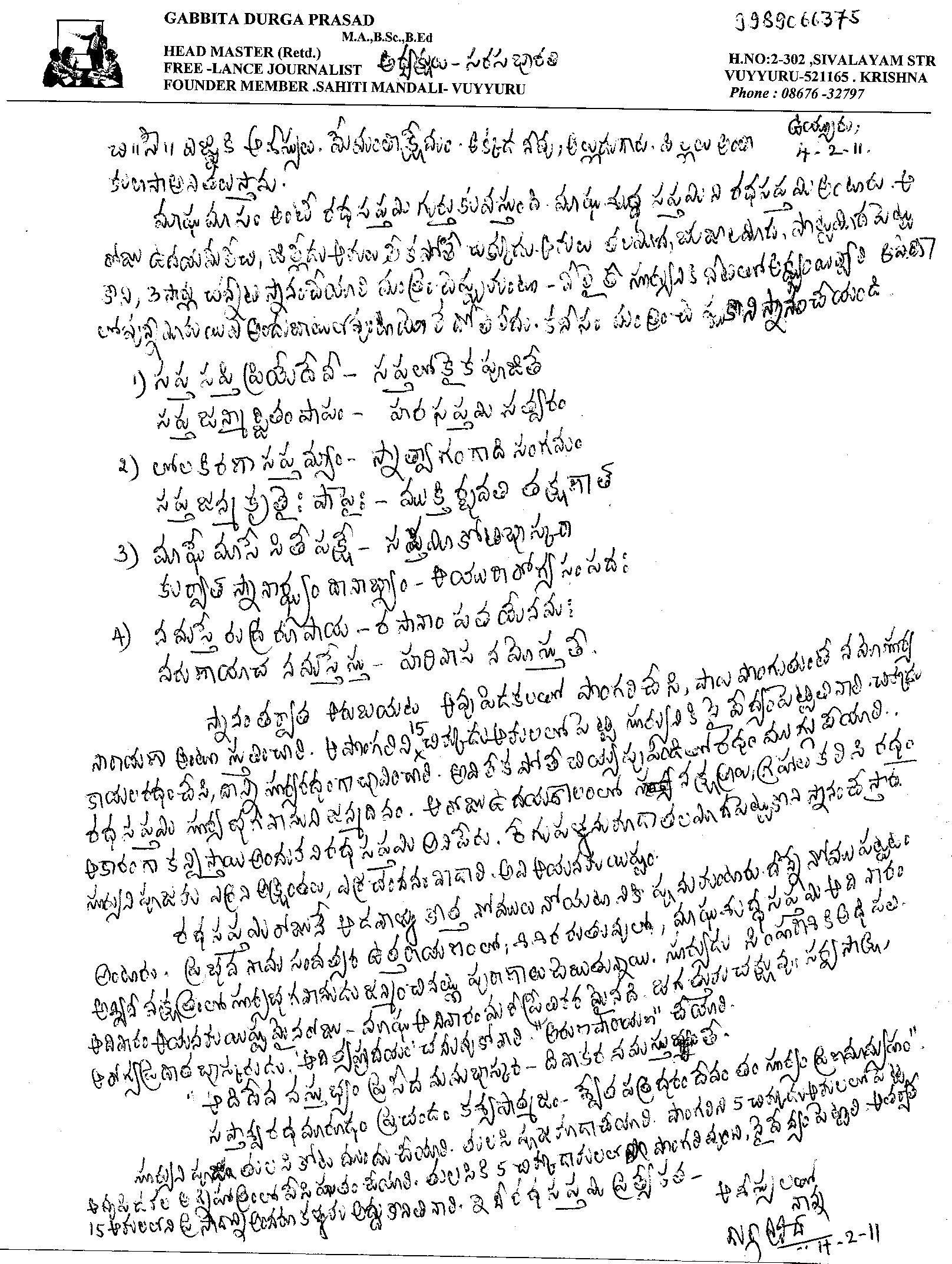 Rtd Head Master 2-405 Sivalayam Street Vuyyuru Krishna District Andhra Pradesh 521165 INDIA Wiki : https://te.wikipedia.org/wiki/%E0%B0%97%E0%B0%AC%E0%B1%8D%E0%B0%AC%E0%B0%BF%E0%B0%9F_%E0%B0%A6%E0%B1%81%E0%B0%B0%E0%B1%8D%E0%B0%97%E0%B0%BE%E0%B0%AA%E0%B1%8D%E0%B0%B0%E0%B0%B8%E0%B0%BE%E0%B0%A6%E0%B1%8D