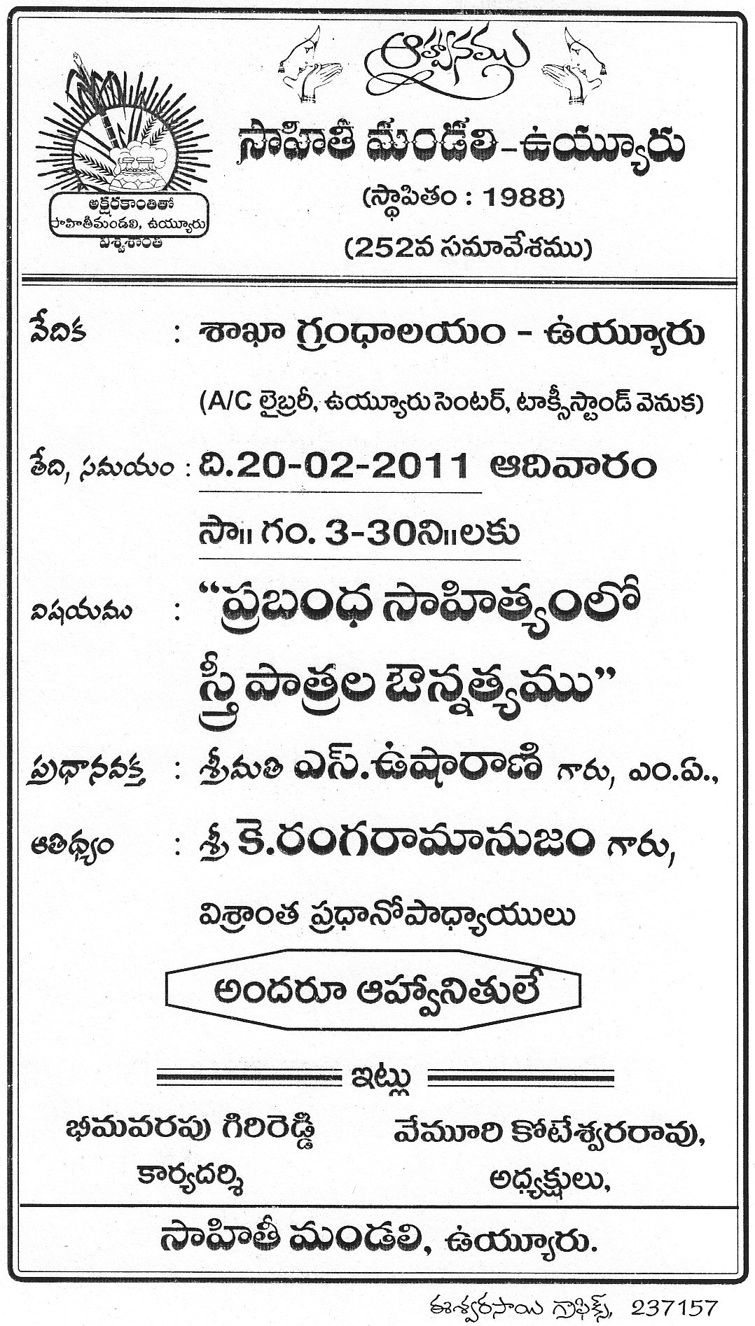 సాహితి మండలి ఉయ్యూరు 252 వ సమావేశం