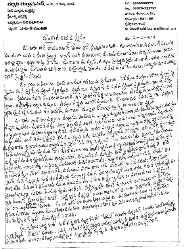మిత్రులకు నమస్తే .ఓంకారం నిజడర్సనాన్ని మీ ముందు ఉంచుతున్నాను చదివి ఆనందించండి