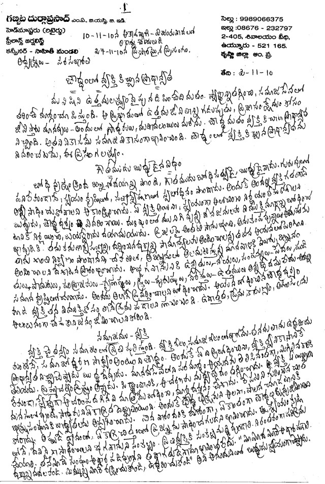 ఉసూల గూడు లోని తోటి వారికి బౌద్ధం లో వ్యక్తికీ ఇచ్చిన ప్రాధాన్యత అనే అంశం మీద చేసిన radio ప్రసంగాన్ని మీ ముందుంచుతున్నాను .