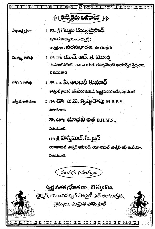 మా కుటుంబ ఆయుర్వేద డాక్టర్ చిన్మయ గారు విజయవాడ బెంజ్ సర్కిల్ దగ్గర ఒక బ్రాంచ్ నీ ప్రారంభిస్తూ ఆ సభకు నన్ను అధ్యక్షులుగా చేసారు అందులో మాట్లాడిన విశేషాలు అందరి కోసం మీ .దు