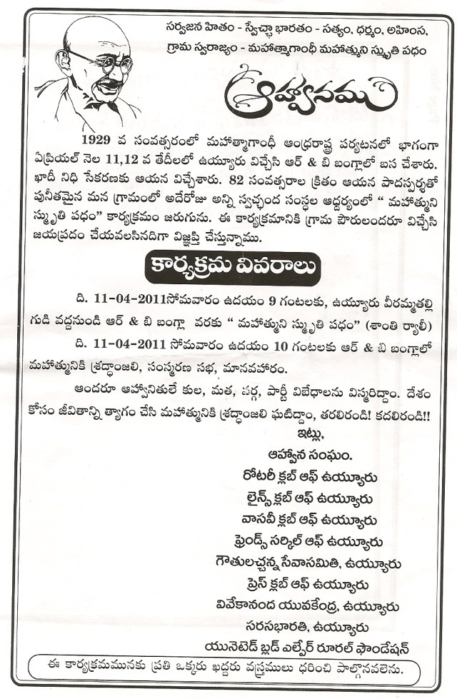 మహాత్ముని స్మృతి పధం -శాంతి ర్యాలి ఉయ్యూరు