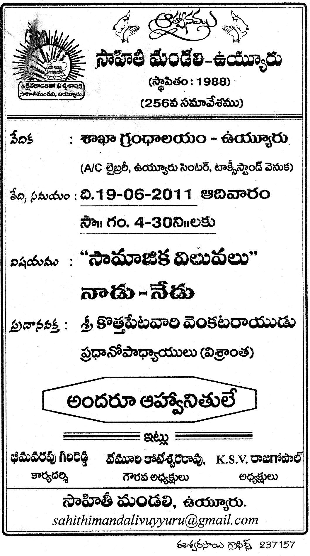సాహితి మండలి ఉయ్యూరు -256 వ సమావేశం -ఆహ్వానం