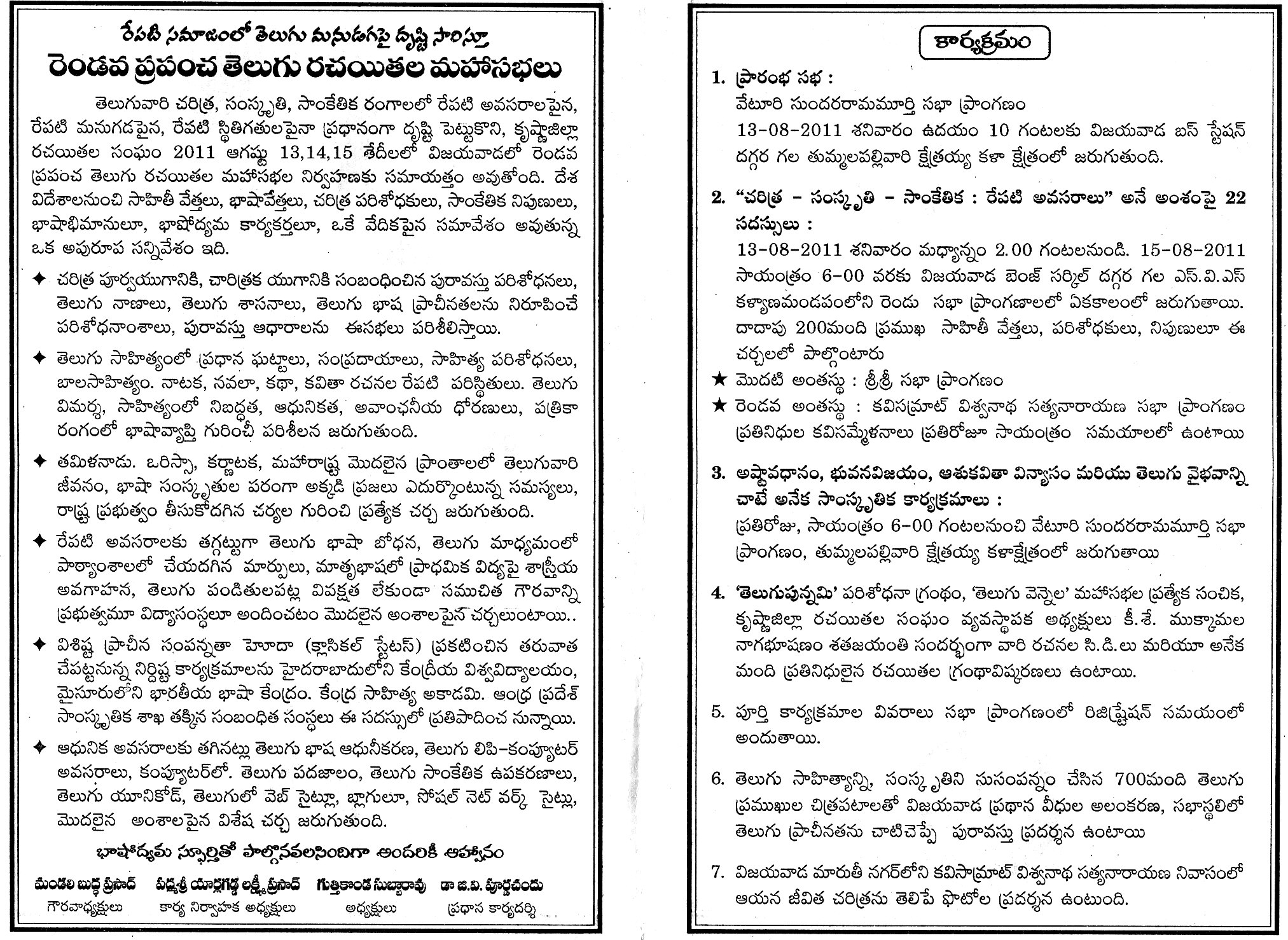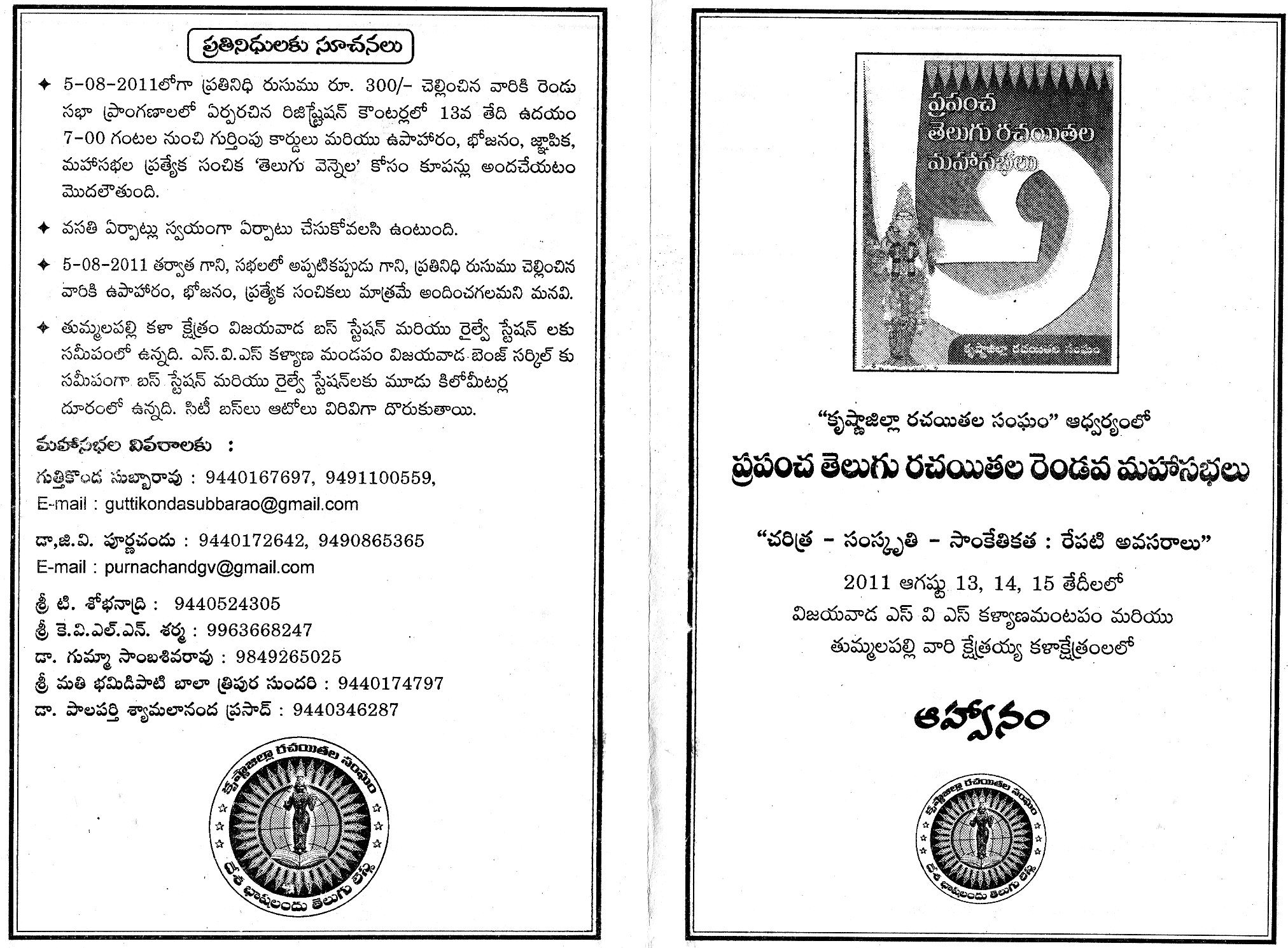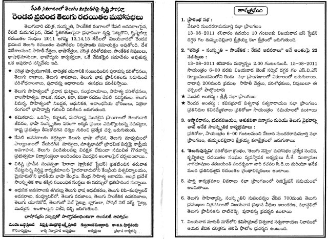 కృష్ణా జిల్లా ప్రపంచ తెలుగు రచయతల 2 వ మహాసభ ఆగస్ట్ 13,14,15… విజయవాడ లో…