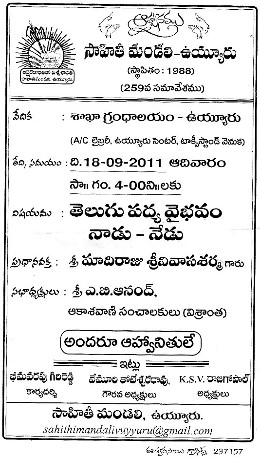రసభారతి – జాషువా జయంతి- విజయవాడ- సాహితీ మండలి – వుయ్యూరు సమావేశం