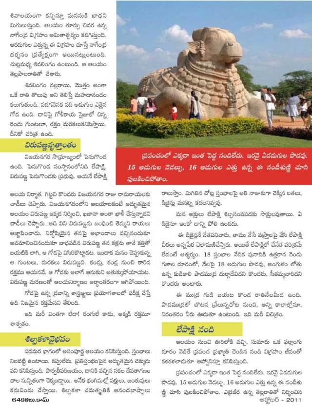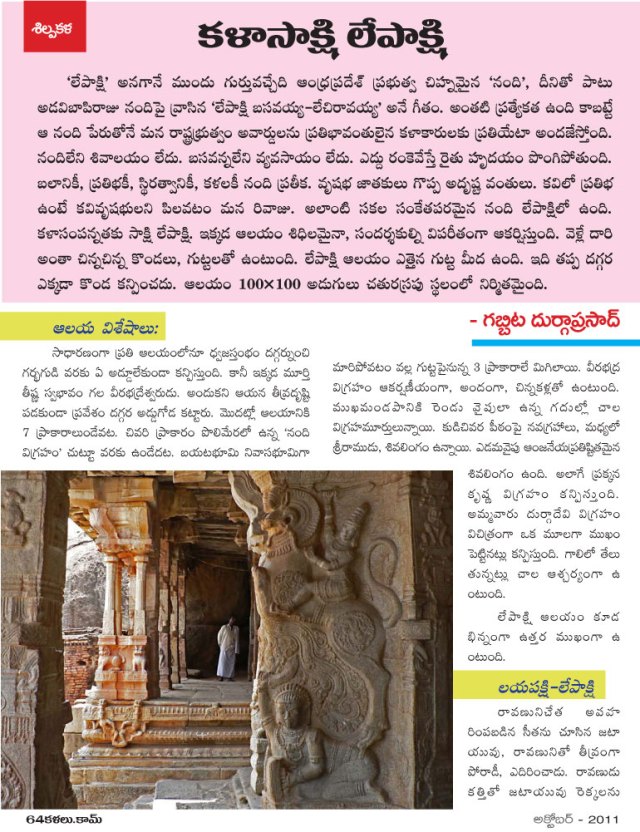 కలాసాక్షి లేపాక్షి 64 కళలు – అక్టోబర్ సంచిక