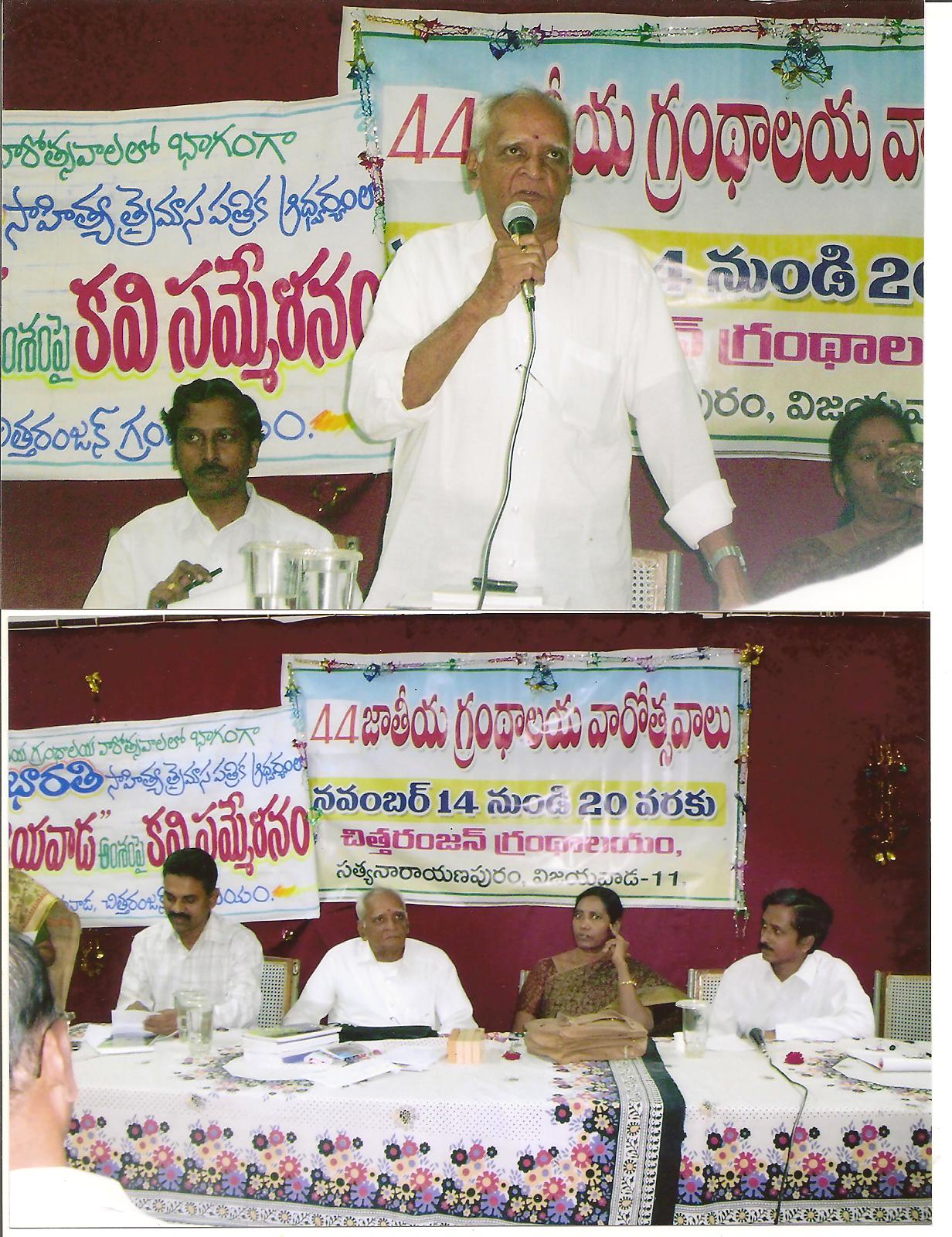 నా కుడి పక్క ఆమె శ్రీమతి మందరపు హైమా వతి-ప్రఖ్యాత రచయిత్రి -ఆమె ప్రక్కన చాల పాక ప్రకాష్ ”రమ్య భారతి ”సంపాదకులు .నా ఎడమ ప్రక్క శ్రీ అరసవల్లి కృష్ణ- కవి ,కవి సమ్మేళనాన్ని నిర్వహించిన వారు .