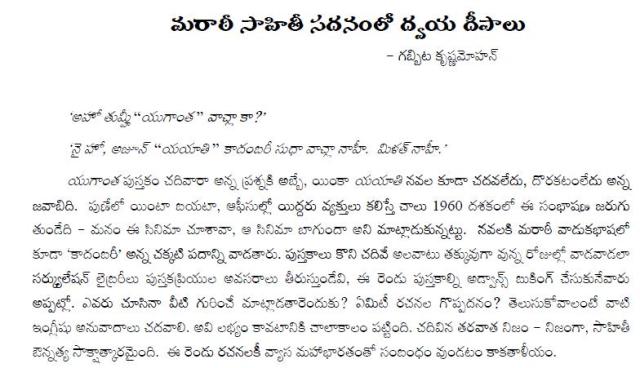 (క్లిక్ చెయ్యండి )మరాఠీ సాహిత్యం లో సదనం లో ద్వయ దీపాలు