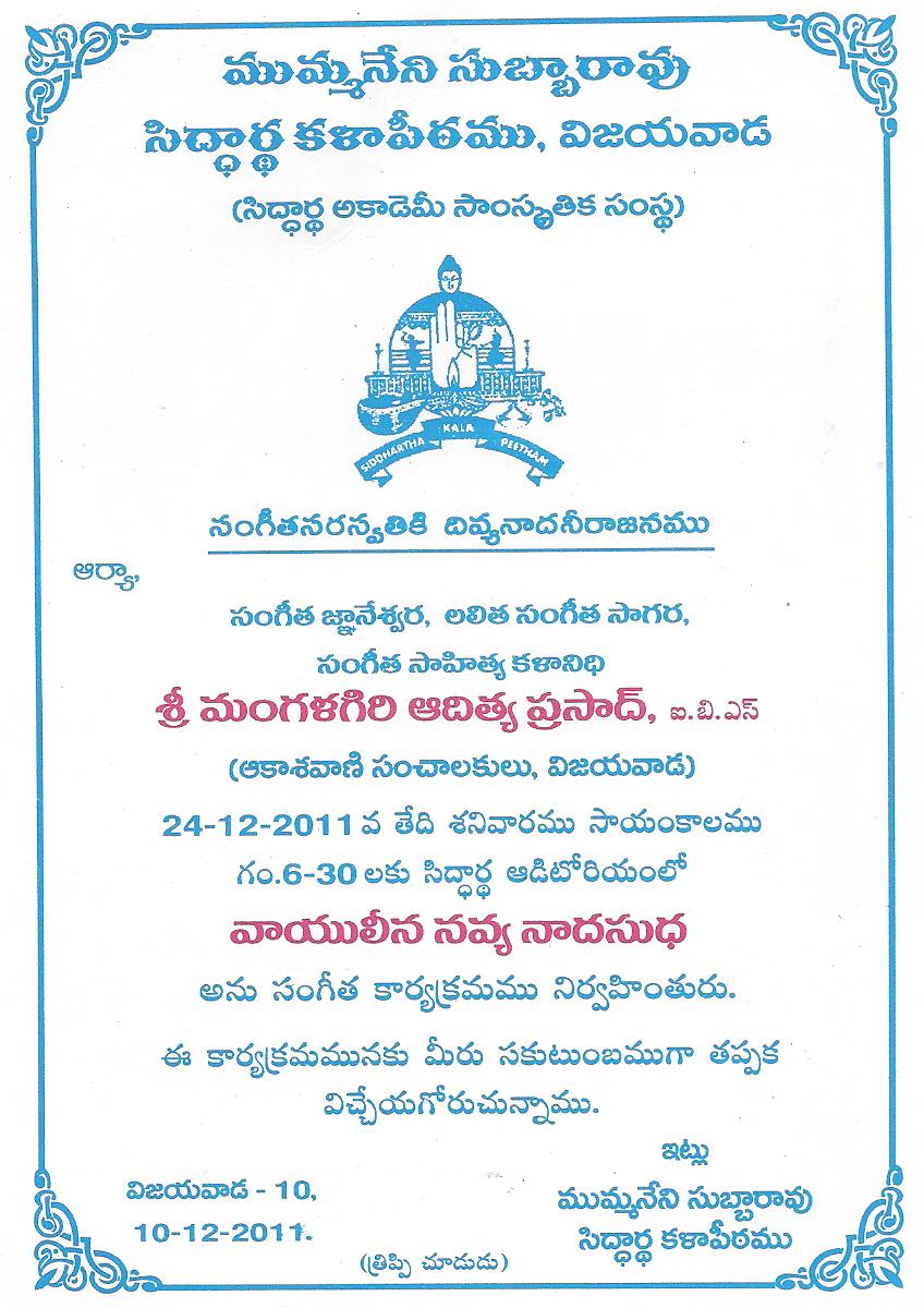 శ్రీ మంగళగిరి ఆదిత్య ప్రసాద్ గారి వాయులీన నవ్య నాద సుధ ఆహ్వానం