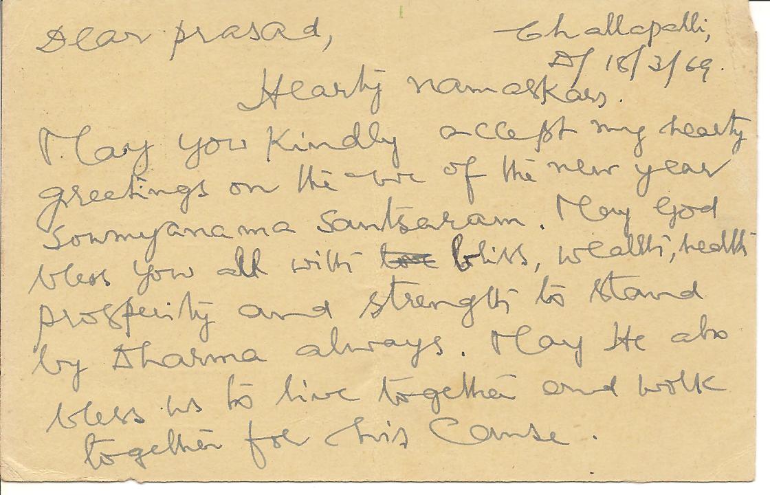 ఉయ్యూరు లో 1965 లో స్వర్గీయ వంగల దత్తు గారి ఆధ్వర్యం లో నేను , ,మా మిత్రులం కలిసి ఏర్పాటు చేసిన ”నన్నయ కళా సమితి ”అనే సాహిత్య ,సాంస్క్తుతిక సంస్థ ,22 –08 -1965 న విష్ణాలయం లో నిర్వహించిన ప్రముఖ సంగీత విద్వాంసులు శ్రీ కల్లూరి సుబ్బా రావు గారి సంగీత కచేరి కి” ఆహ్వాన పత్రిక” .దీన్ని తయారు చేసి టైపు కొట్టిన వారు -ఆంద్ర టైపు ఇన్స్టిట్యూట్ ప్రిన్సిపాల్ శ్రీ సీతం రాజు సత్య నారాయణ గారు . ఎక్కడో వెతుకు తుంటే ఈ పాత బంగారం బయట పడింది . రెండోది ప్రముఖ ఆర్.ఎస్,ఎస్ .నాయకులు ,నాకు అత్యత ఆప్తులు ,విలువలకు ప్రాధాన్య మిచ్చే మనీషి ,అవనిగడ్డ వాస్తవ్యులు,అక్కడిప్రభుత్వ జూనియర్ కాలేజీ ప్రిన్చ్సిపాల్ శ్రీ ఏం.వి.కృష్ణ రావు ఉగాది సందర్భం గా నాకు పంపిన శుభాకాంక్షల ఉత్తరం .ఇదీ దొరికిన పాత బంగారమే .