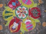ఇళ్ళల్లో సంక్రాంతి పిండి వంటలు భారీగా చేసు కొనే వారు .ఇరుగమ్మ ,పోరుగమ్మ సాయం చేసే వారు సామూహికం గా అరిసెలు ,చక్కిలాలు జంతికలు కారప్పూస చేయటం వుండేది .ఆ నాడు అంత తీరు బడి వుండేది .ఇవాళ అంతా బిజీ లైఫ్ .లోగిలి అంటే  నే వొళ్ళు  పులకించి పోయేట్లు వుండేది .లక్ష్మీ దేవి నాట్యం చేసు వాకిట్లో కొలువై ఉండేదా అన్నట్లుండేది ప్రతి ఇల్లు ,వాకిలి .అదో గత వైభవం .గుర్తు చేసుకోవటం మన ధర్మం .