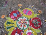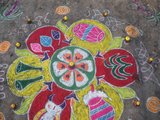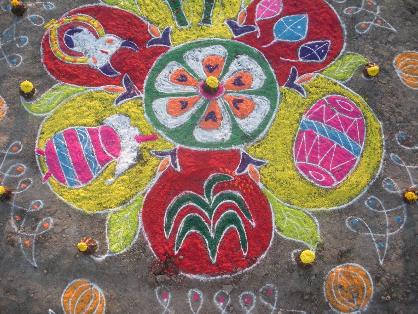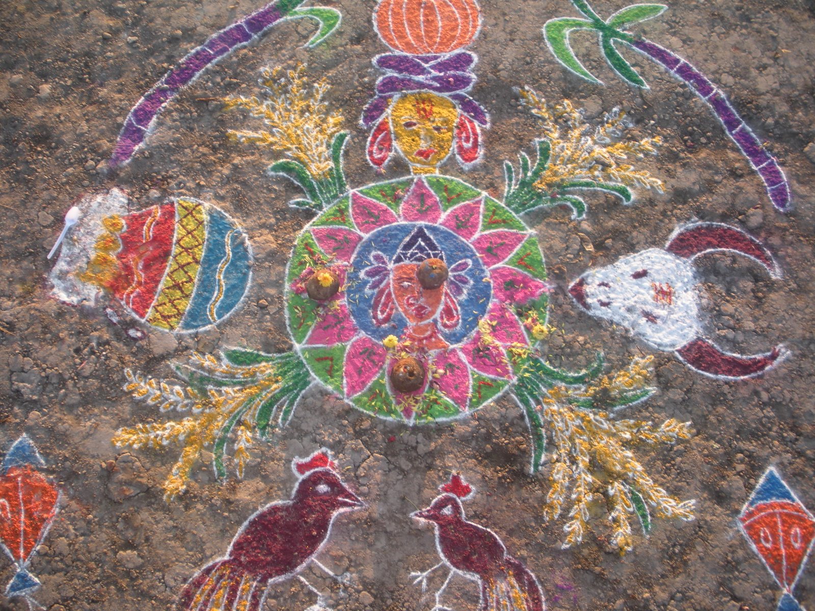 ఇళ్ళల్లో సంక్రాంతి పిండి వంటలు భారీగా చేసు కొనే వారు .ఇరుగమ్మ ,పోరుగమ్మ సాయం చేసే వారు సామూహికం గా అరిసెలు ,చక్కిలాలు జంతికలు కారప్పూస చేయటం వుండేది .ఆ నాడు అంత తీరు బడి వుండేది .ఇవాళ అంతా బిజీ లైఫ్ .లోగిలి అంటే  నే వొళ్ళు  పులకించి పోయేట్లు వుండేది .లక్ష్మీ దేవి నాట్యం చేసు వాకిట్లో కొలువై ఉండేదా అన్నట్లుండేది ప్రతి ఇల్లు ,వాకిలి .అదో గత వైభవం .గుర్తు చేసుకోవటం మన ధర్మం .