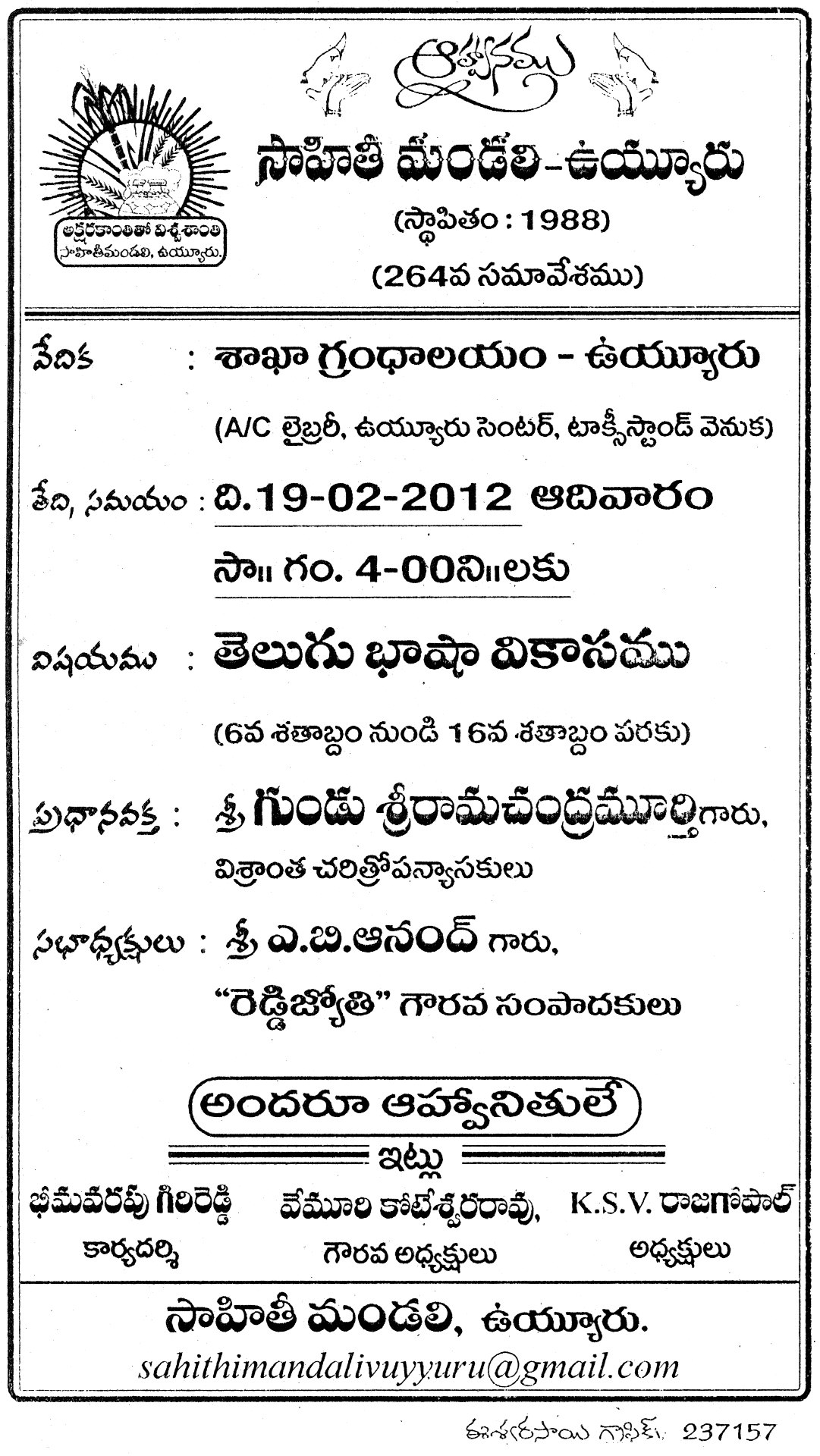 సాహితి మండలి ఉయ్యూరు – “తెలుగు భాషా వికాసము “