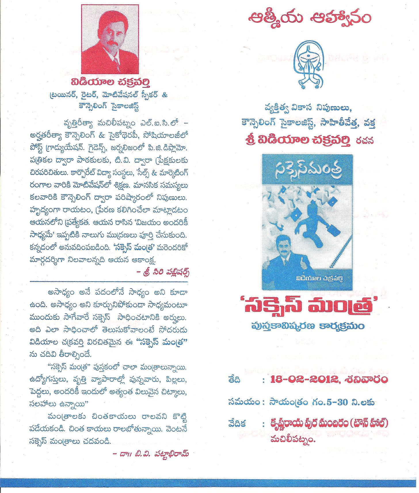 సక్సస్ మంత్ర – ఆత్మీయ ఆహ్వానం