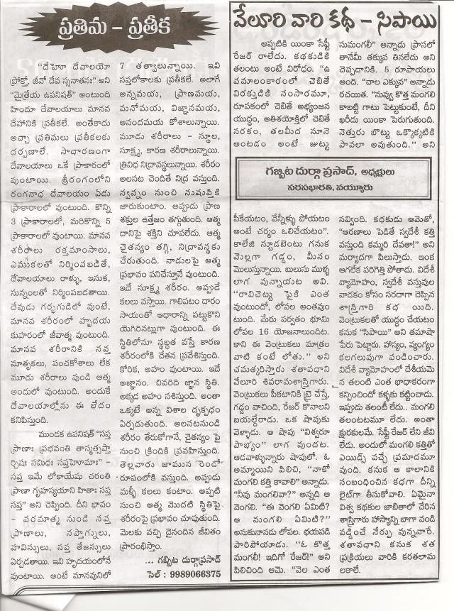 స్టేట్ లీడర్ పత్రికలో 15 – 4 – 2012 ప్రచురించిన వ్యాసం ప్రతిమ  – ప్రతీక