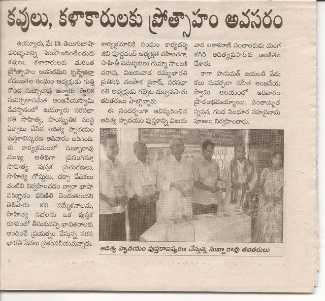 - యాజ్ఞ వల్క్య గీతా.7 వ భాగం.21.12.25. గబ్బిట దుర్గా ప్రసాద్ ప్రసారమైన అంశం సరసభారతి ఉయ్యూరు
