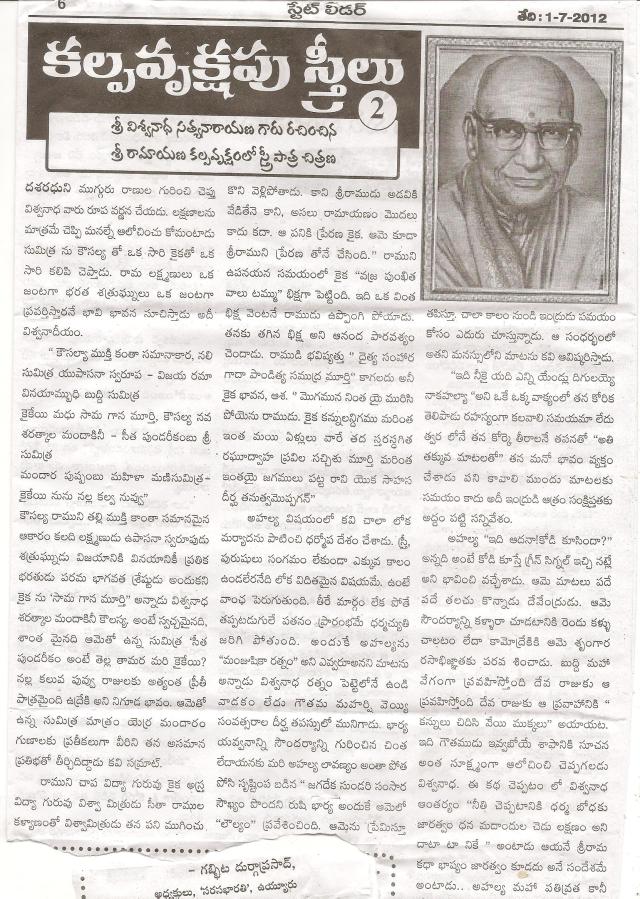 స్టేట్ లీడర్ లో వచ్చిన వ్యాసం – కల్ప వృక్ష స్త్రీలు