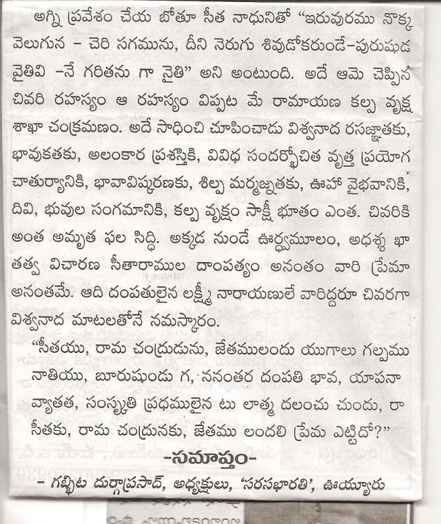 - వాల్మీకి మహర్షి కృత శ్రీ మద్రామాయణం. ఆచార్య పుల్లెల శ్రీరామ చంద్రుడి గారి బాలానందినీ వ్యాఖ్య.71 వ భాగం.22.12.25