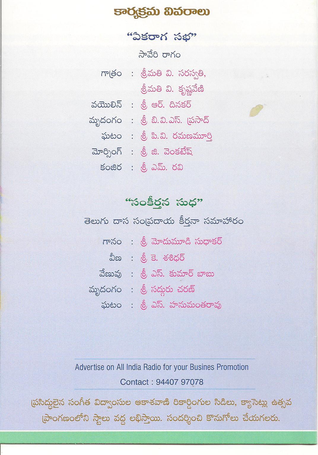 ← ప్రసార భారతి – సంగీత విభావరి – మచిలీ పట్నం లో