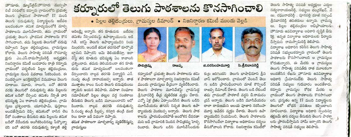 కర్నూరు లో తెలుగు పాఠ‍శాలను కొనసాగించాలి