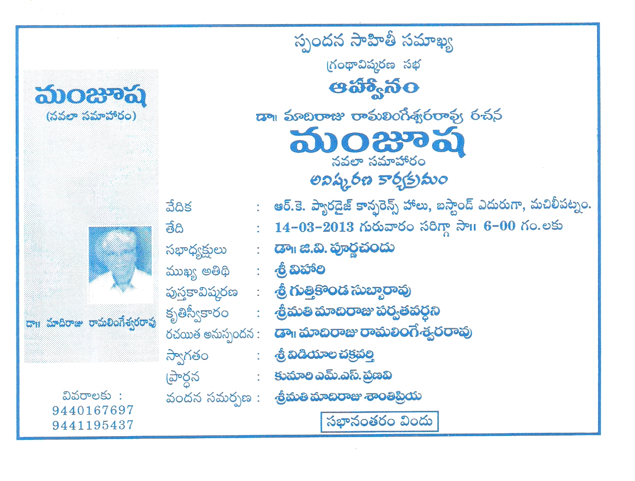 మంజూష నవలా సమాహారం – ఆవిష్కరణ – మచిలీపట్టణం
