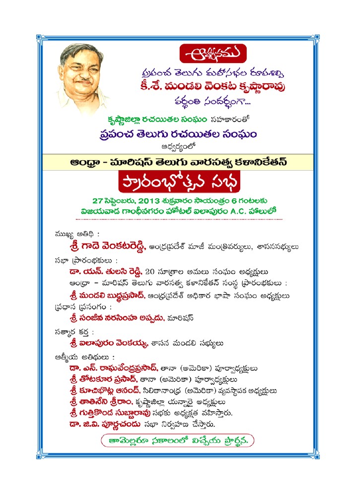 ఆంద్ర – మారిషస్ తెలుగు వారసత్వ కళానికేతన్- ప్రరంభోత్సవ సభ – విజయవాడ లో