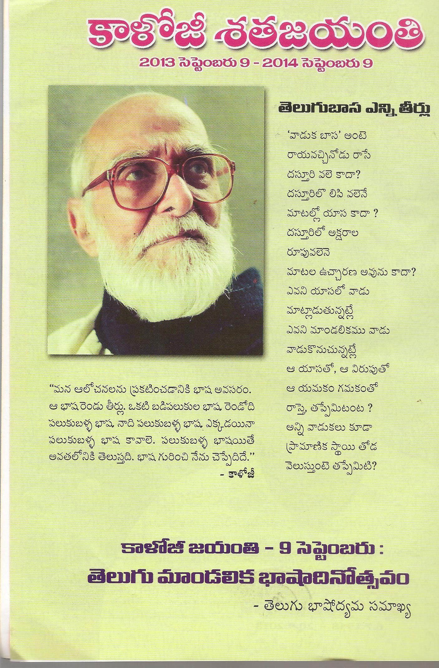కాళోజి శత జయంతి -నడుస్తున్న చరిత్ర -అక్టోబర్