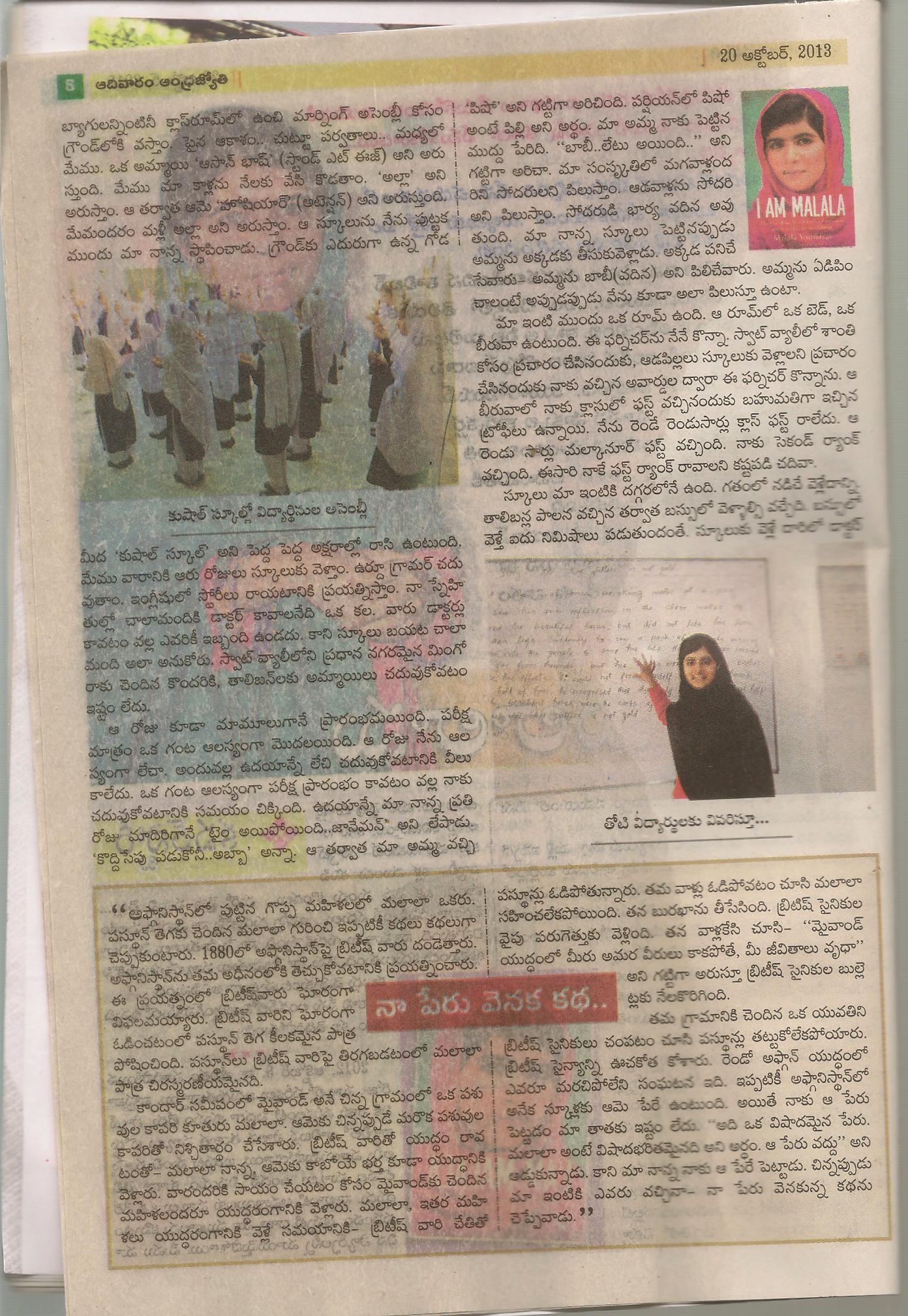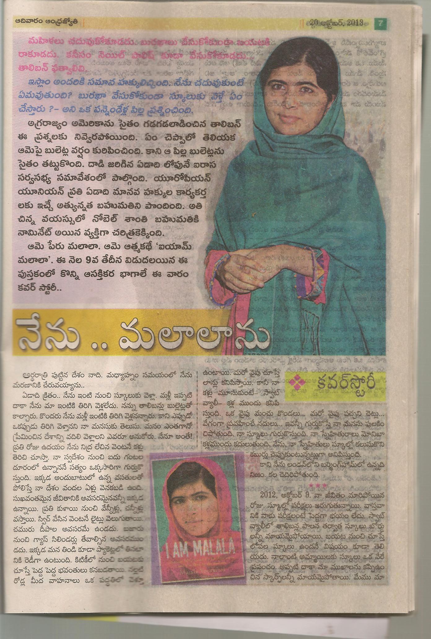 నేను మలాలా -ఆత్మకధ -ఆంధ్ర జ్యోతి ఆదివారం -20-10-13