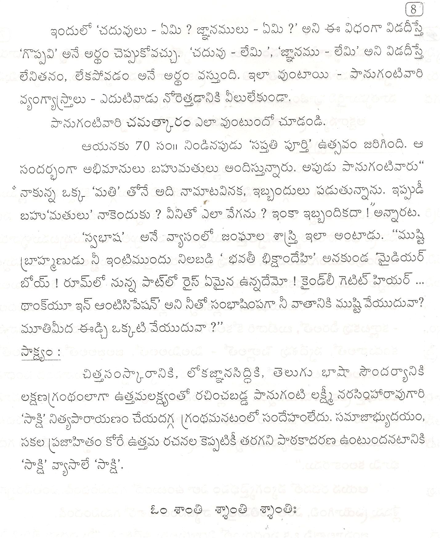 పాను గంటి వారి సాక్షి వ్యాసాలపై22-10-13 న సరస భారతి 52వ సమావేశం లో శ్రీ జి.వెనుగొపాల రెడ్డి చేసిన ప్రసంగం