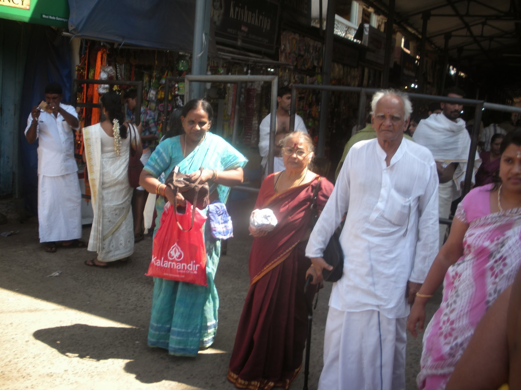 గురుఅవాయూర్ లో .లుంగీ ,పై పంచె తోనే దర్శనం .రూమ్ నుండి అలానే బయల్దేరాం .జనం బాగా ఉన్నారు .ఆడవాళ్ళకు ప్రత్యెక క్యూ ఉంది. వీల్లిద్దరిని అందులో నుంచో బెట్టి మేమిద్దరం వెనక ఉన్న క్యూ లో చేరాం. కెమెరా సెల్ అక్కడ క్లోక్ రూమ్ లో ఇచ్చే వచ్చాం .దాదాపు గంటన్నర పట్టింది గురవాయూరాప్ప దర్శనానికి .జీవితం ధన్య మైన దర్శనం ఇది .ఎన్నో ఏళ్ళుగా ఎదురు చూసింది .విగ్రహం చిన్నదే