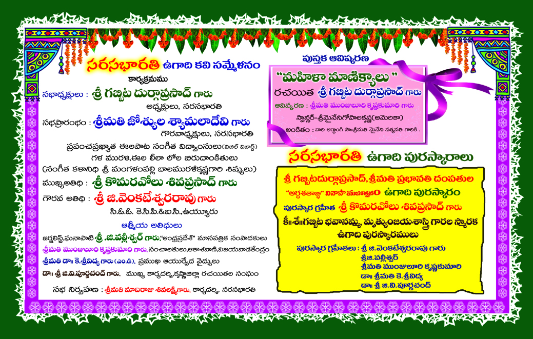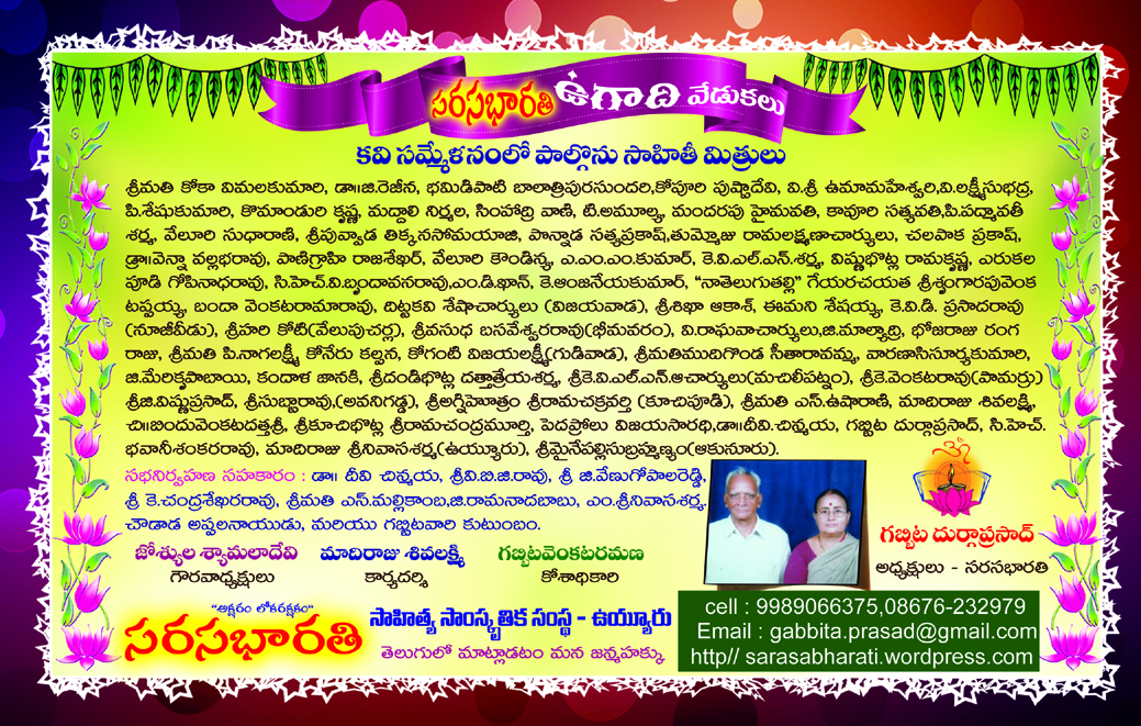 - యాజ్ఞ వల్క్య గీతా.7 వ భాగం.21.12.25. గబ్బిట దుర్గా ప్రసాద్ ప్రసారమైన అంశం సరసభారతి ఉయ్యూరు