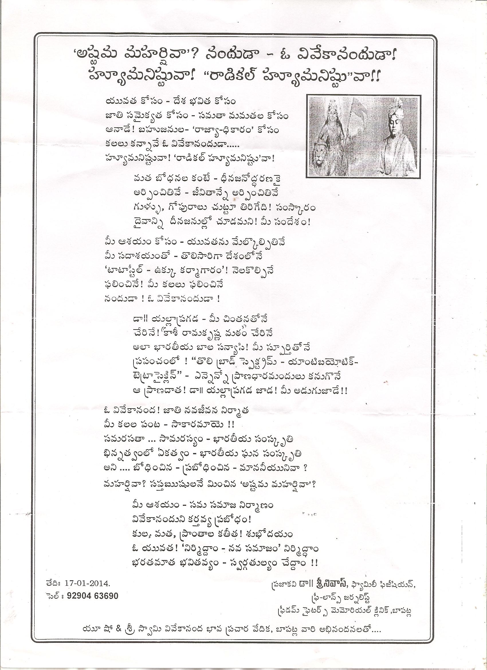 రాడికల్ హ్యూమనిస్ట్ స్వామి వివేకానంద అంటున్న డా శ్రీనివాస్ -బాపట్ల