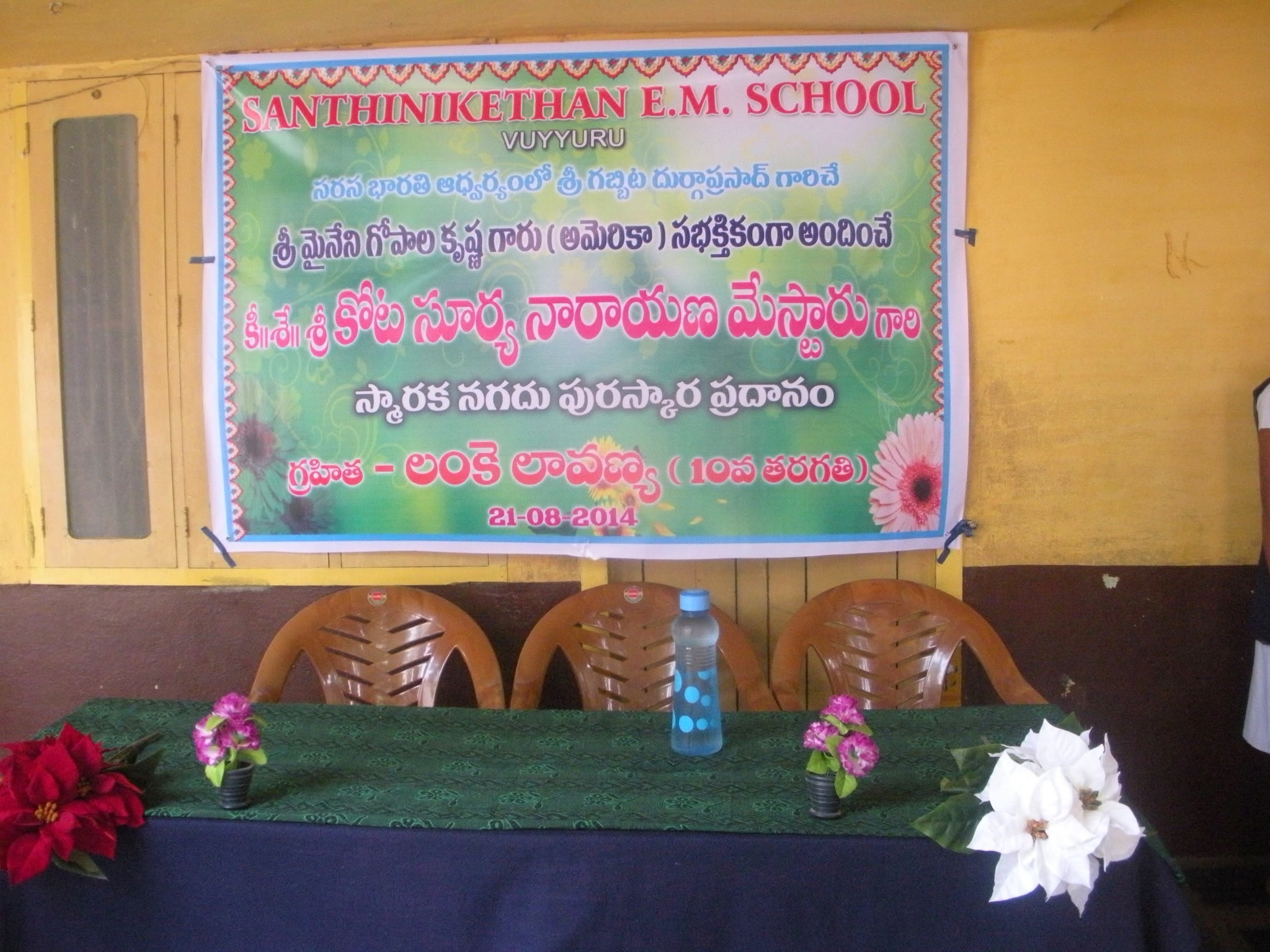 ← శ్రీ మైనేని గోపాల కృష్ణ గారు (అమెరికా)తమ గురువుగారు స్వర్గీయ కోట సూర్య నారాయణ గారి జ్ఞాపకార్ధం అందజేసిన నగదు పురస్కారం