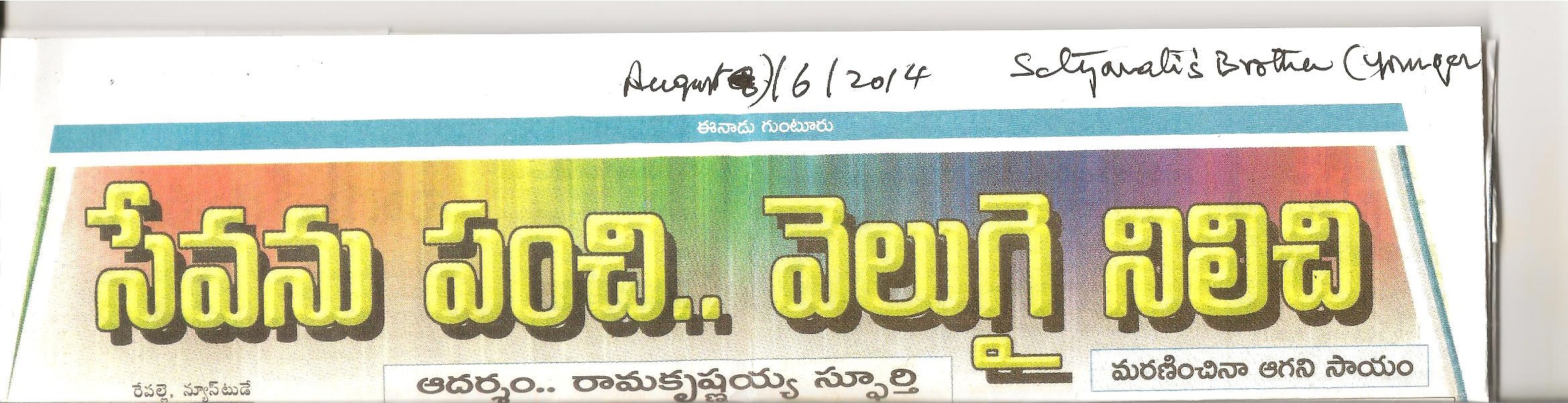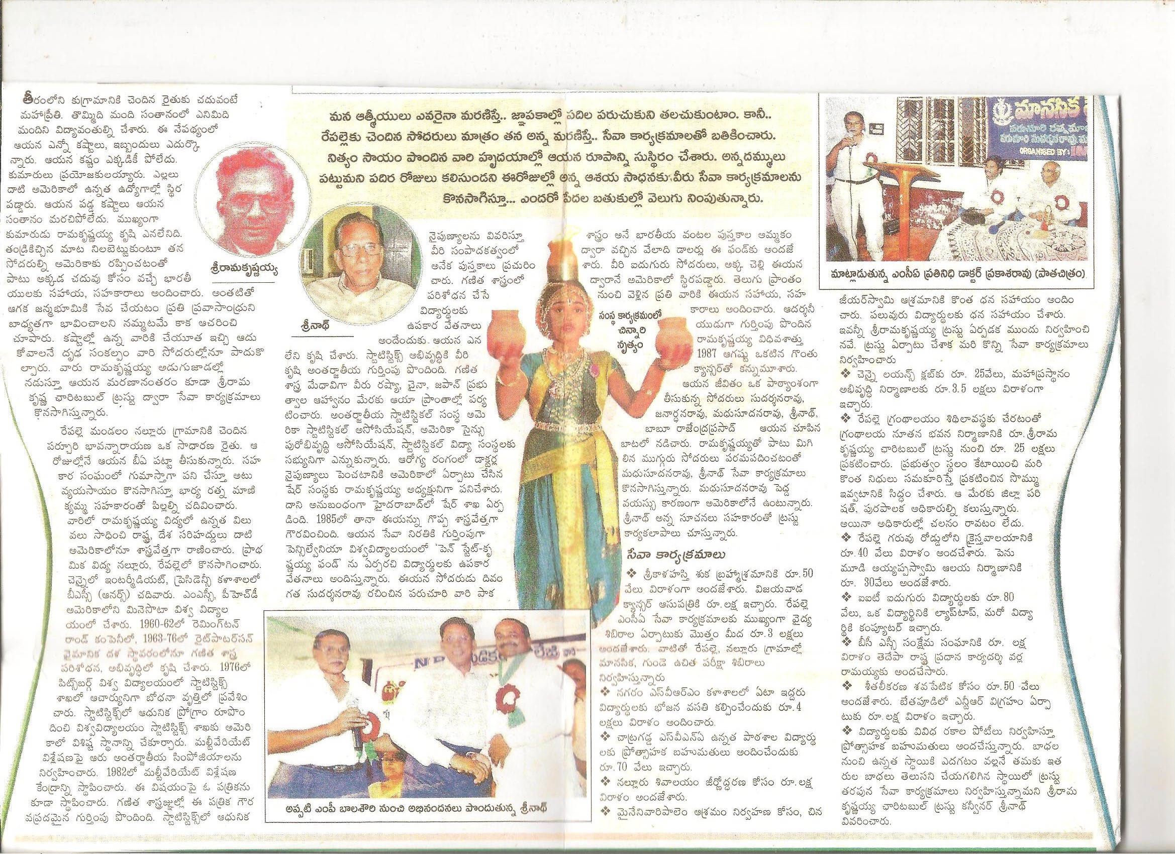 శ్రీ మైనేని గోపాల కృష్ణ గారి బావ మరది స్వర్గీయ పరుచూరి రామ క్రిష్నయ్య గారి సాంఘిక సేవ ,దాన్ని కొనసాగిస్తున్న సోదరుడు శ్రీ శ్రీనాధ్