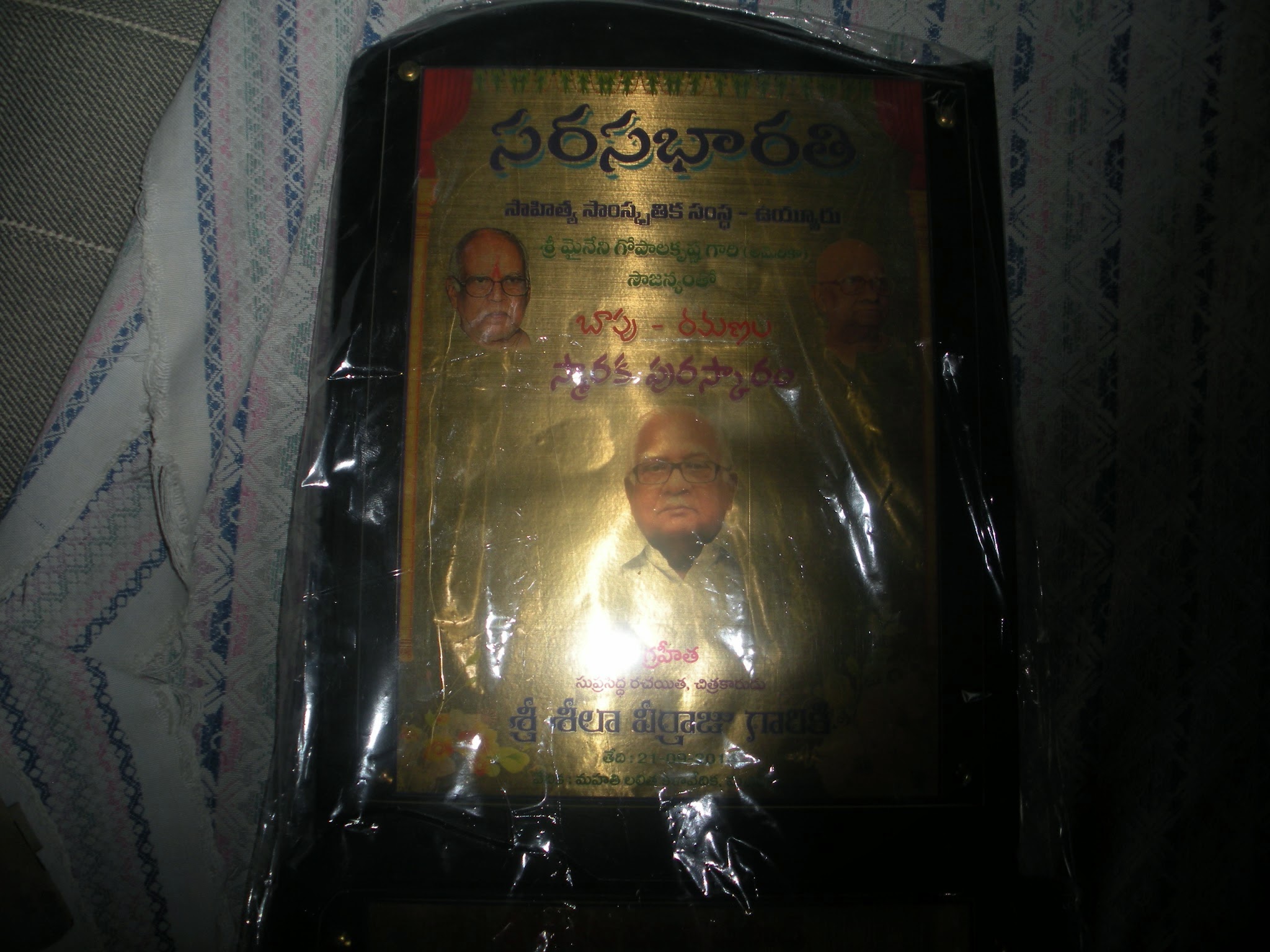 ← శ్రీ శీలా వీర్రాజు గారికి ‘’బాపు –రమణ ‘’ల స్మారక నగదు పురస్కారప్రదాన మహోత్సవం