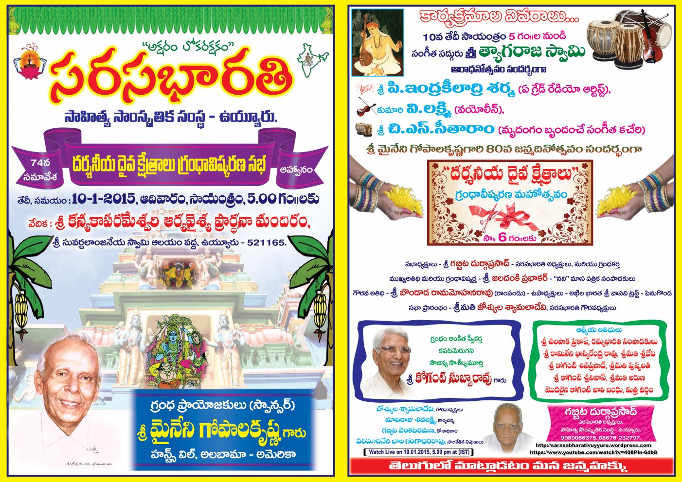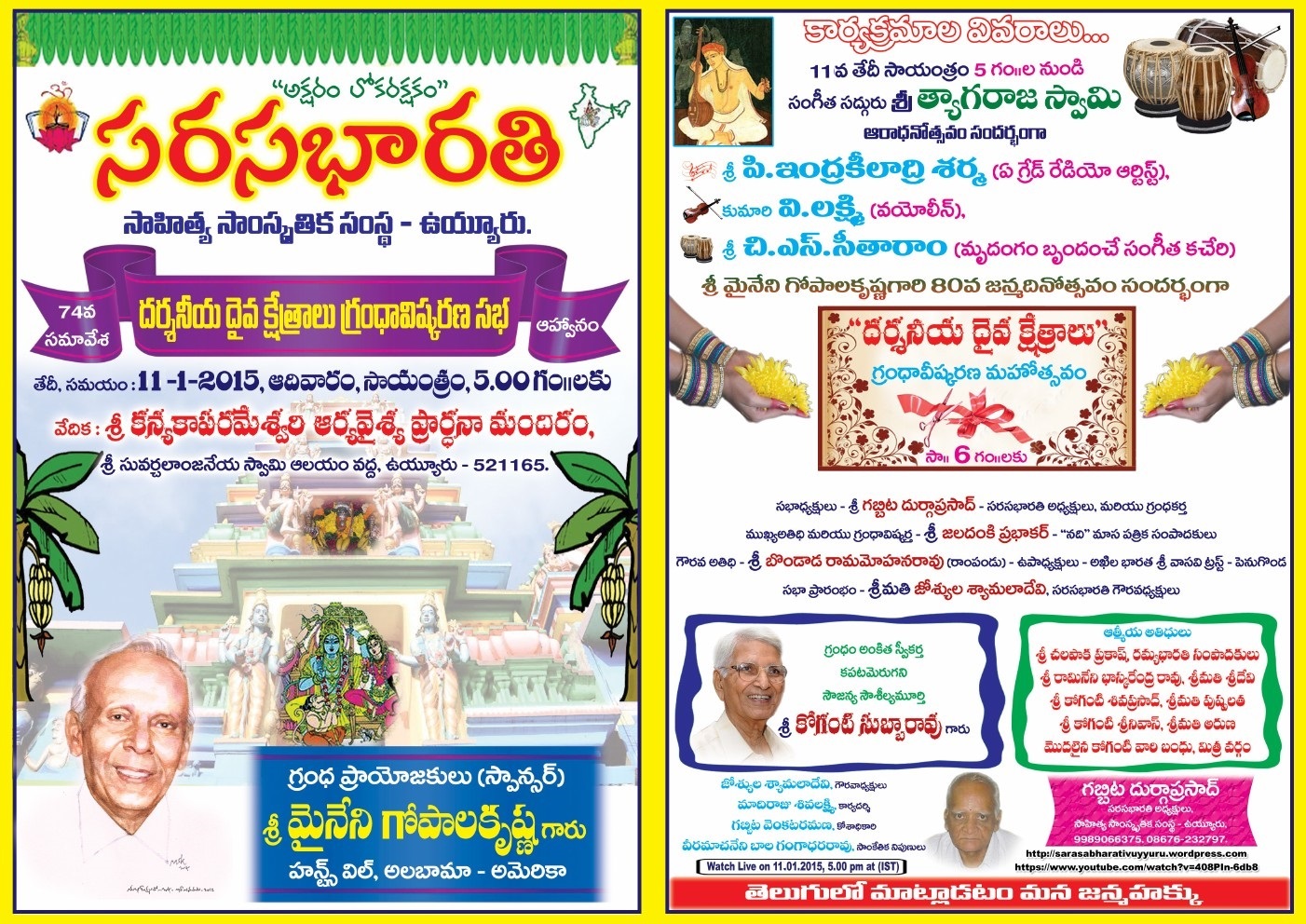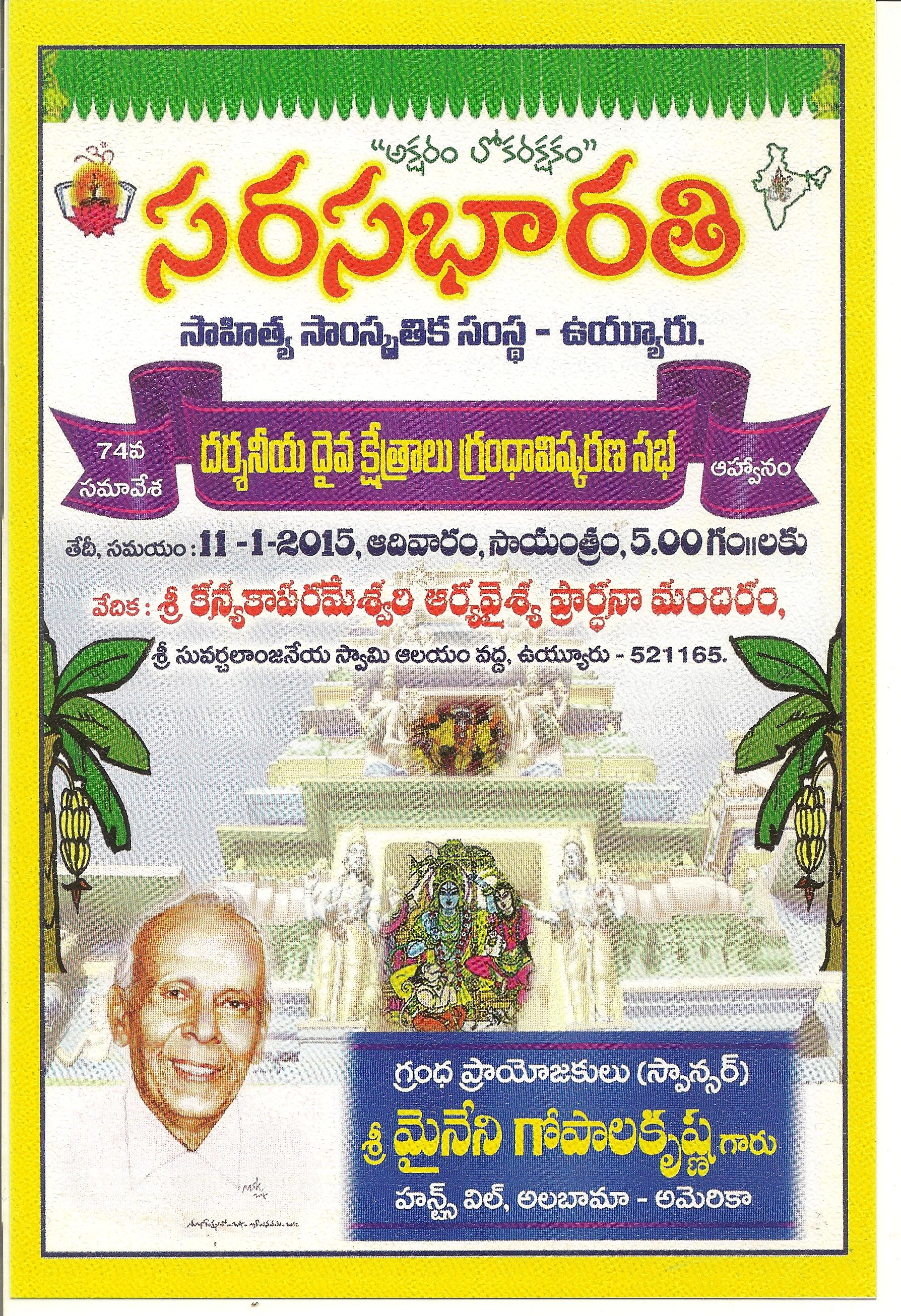 - సరసభారతి 185వ కార్యక్రమం గా శ్రీ కోట గురు వరేణ్యుల స్మారక నగదు పురస్కార ప్రదాన కార్యక్రమం