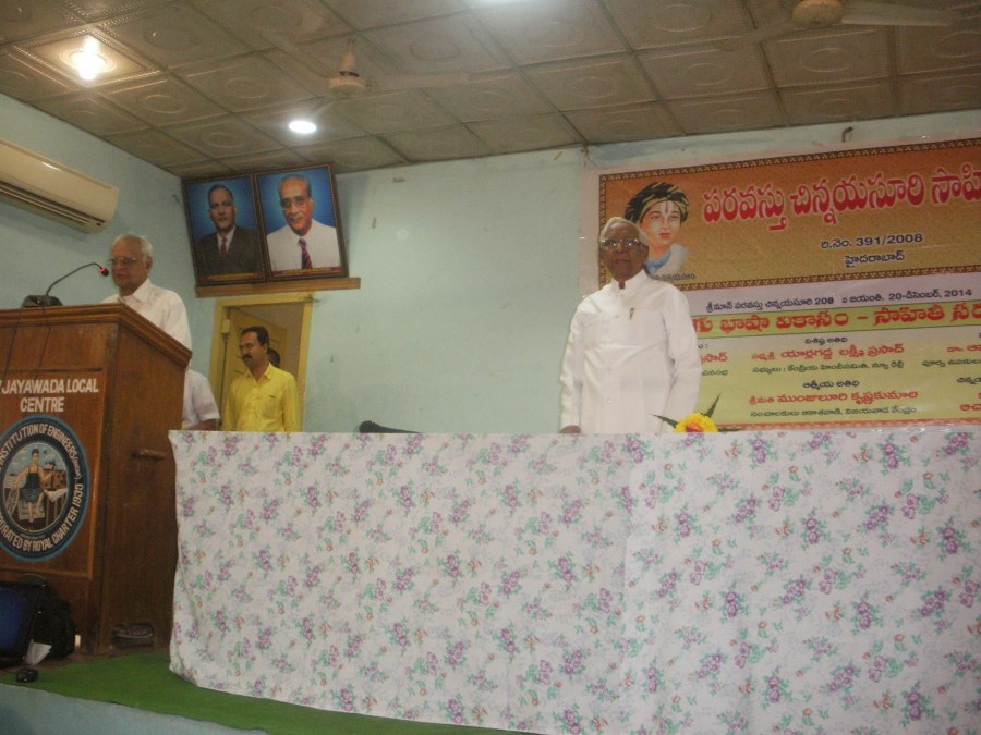 ← విజయవాడ లో పరవస్తు చిన్నయ సూరి సాహితీ పీఠం ఆధ్వర్యం లో చిన్నయసూరిగారి 208 జయంతి సందర్భం గా 20-12-14 శనివారం జరిగిన తెలుగు భాషా వికాసం సదస్సు దృశ్యమాలిక