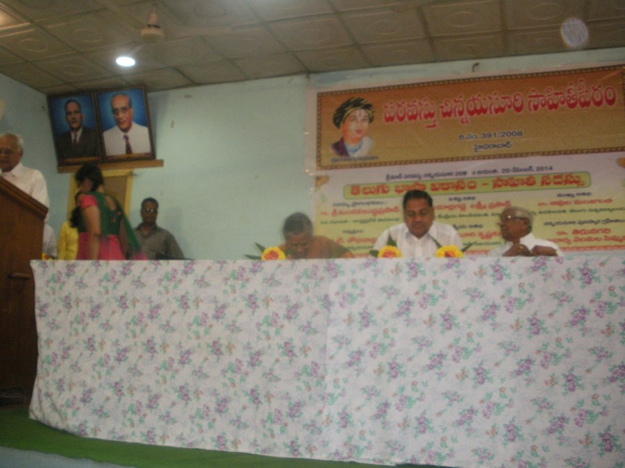 ← విజయవాడ లో పరవస్తు చిన్నయ సూరి సాహితీ పీఠం ఆధ్వర్యం లో చిన్నయసూరిగారి 208 జయంతి సందర్భం గా 20-12-14 శనివారం జరిగిన తెలుగు భాషా వికాసం సదస్సు దృశ్యమాలిక