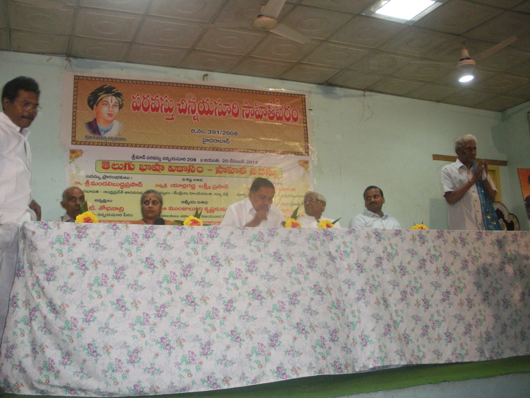 ← విజయవాడ లో పరవస్తు చిన్నయ సూరి సాహితీ పీఠం ఆధ్వర్యం లో చిన్నయసూరిగారి 208 జయంతి సందర్భం గా 20-12-14 శనివారం జరిగిన తెలుగు భాషా వికాసం సదస్సు దృశ్యమాలిక