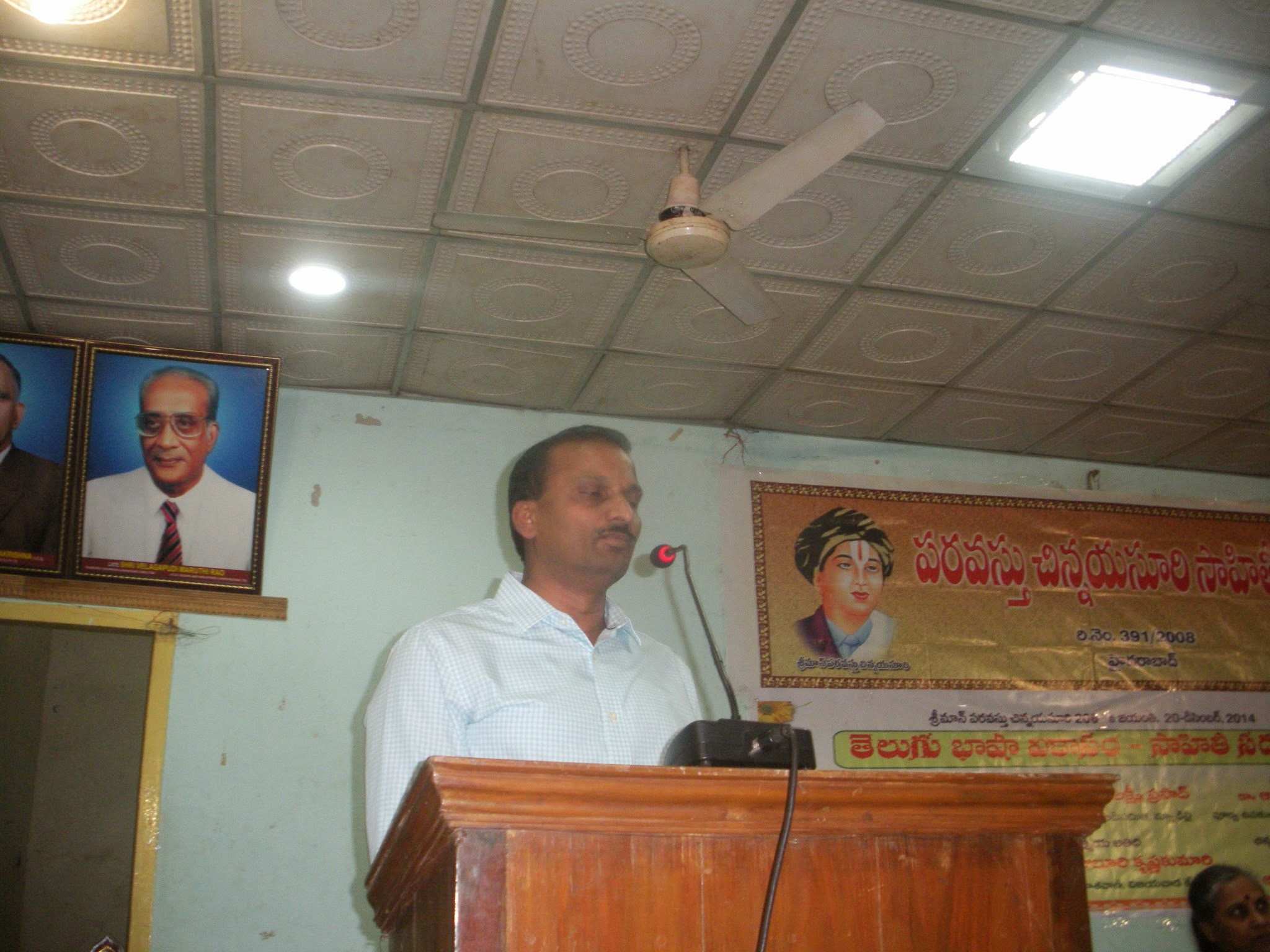 ← విజయవాడ లో పరవస్తు చిన్నయ సూరి సాహితీ పీఠం ఆధ్వర్యం లో చిన్నయసూరిగారి 208 జయంతి సందర్భం గా 20-12-14 శనివారం జరిగిన తెలుగు భాషా వికాసం సదస్సు దృశ్యమాలిక
