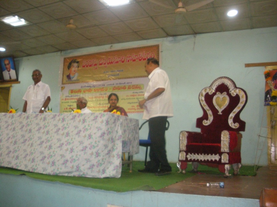 ← విజయవాడ లో పరవస్తు చిన్నయ సూరి సాహితీ పీఠం ఆధ్వర్యం లో చిన్నయసూరిగారి 208 జయంతి సందర్భం గా 20-12-14 శనివారం జరిగిన తెలుగు భాషా వికాసం సదస్సు దృశ్యమాలిక