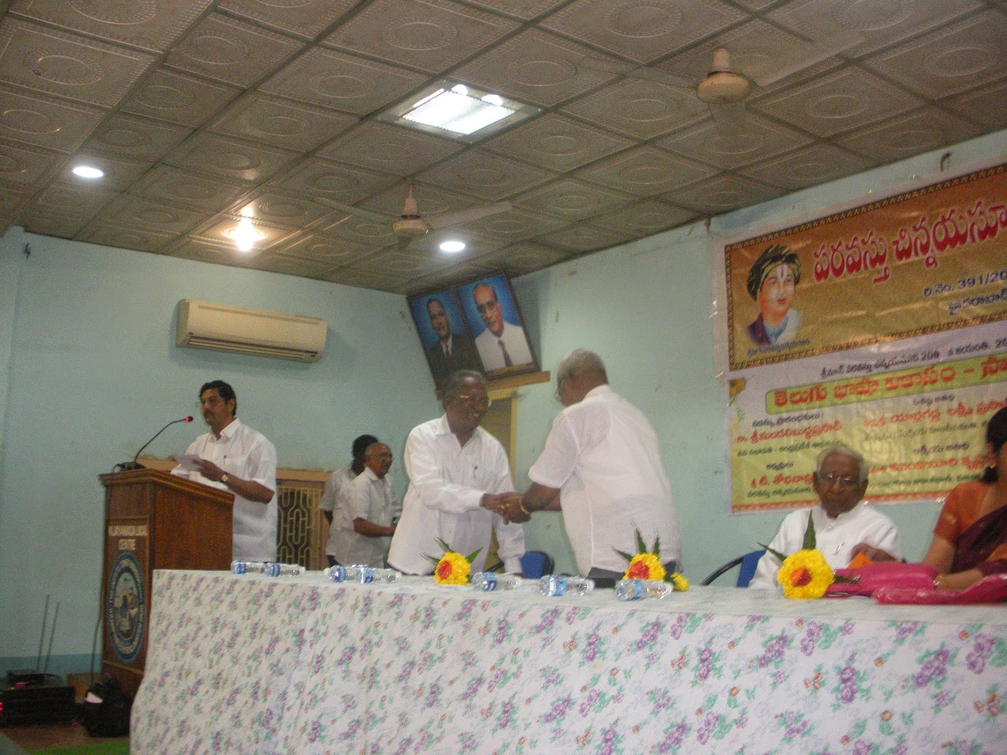 ← విజయవాడ లో పరవస్తు చిన్నయ సూరి సాహితీ పీఠం ఆధ్వర్యం లో చిన్నయసూరిగారి 208 జయంతి సందర్భం గా 20-12-14 శనివారం జరిగిన తెలుగు భాషా వికాసం సదస్సు దృశ్యమాలిక
