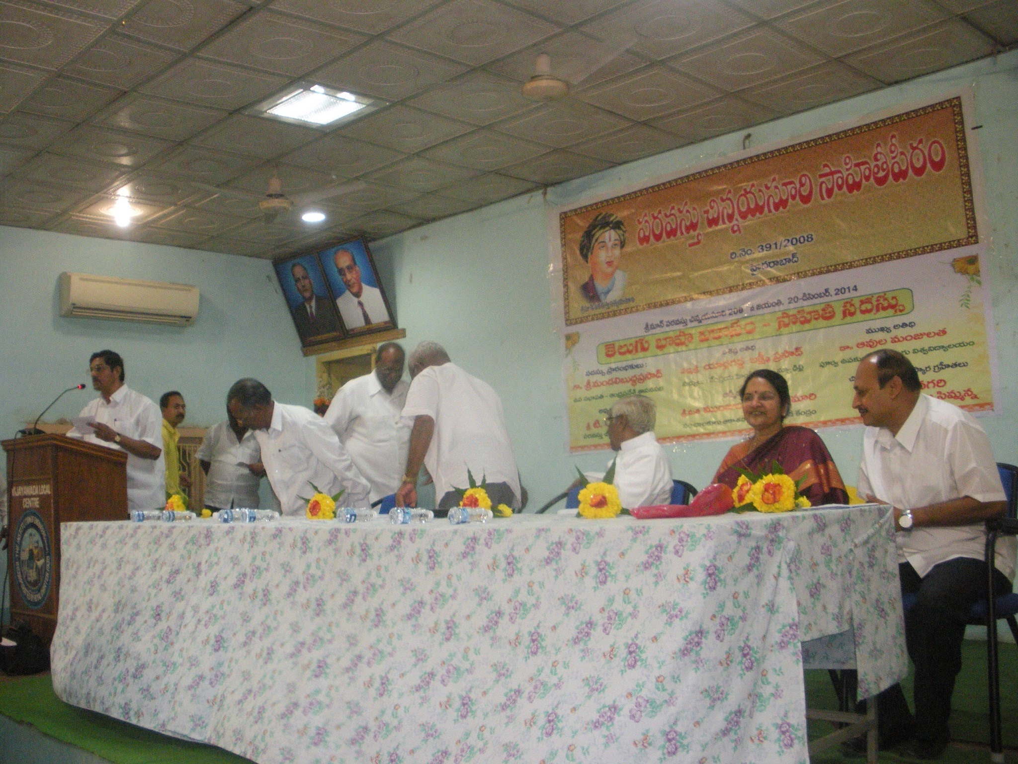 ← విజయవాడ లో పరవస్తు చిన్నయ సూరి సాహితీ పీఠం ఆధ్వర్యం లో చిన్నయసూరిగారి 208 జయంతి సందర్భం గా 20-12-14 శనివారం జరిగిన తెలుగు భాషా వికాసం సదస్సు దృశ్యమాలిక