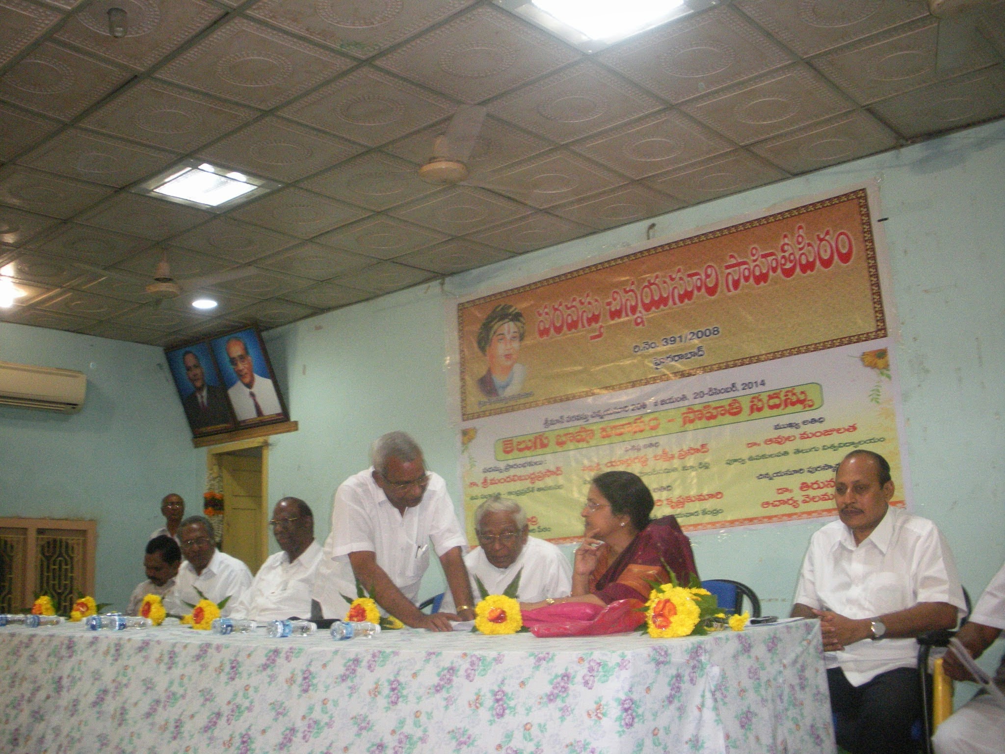 ← విజయవాడ లో పరవస్తు చిన్నయ సూరి సాహితీ పీఠం ఆధ్వర్యం లో చిన్నయసూరిగారి 208 జయంతి సందర్భం గా 20-12-14 శనివారం జరిగిన తెలుగు భాషా వికాసం సదస్సు దృశ్యమాలిక
