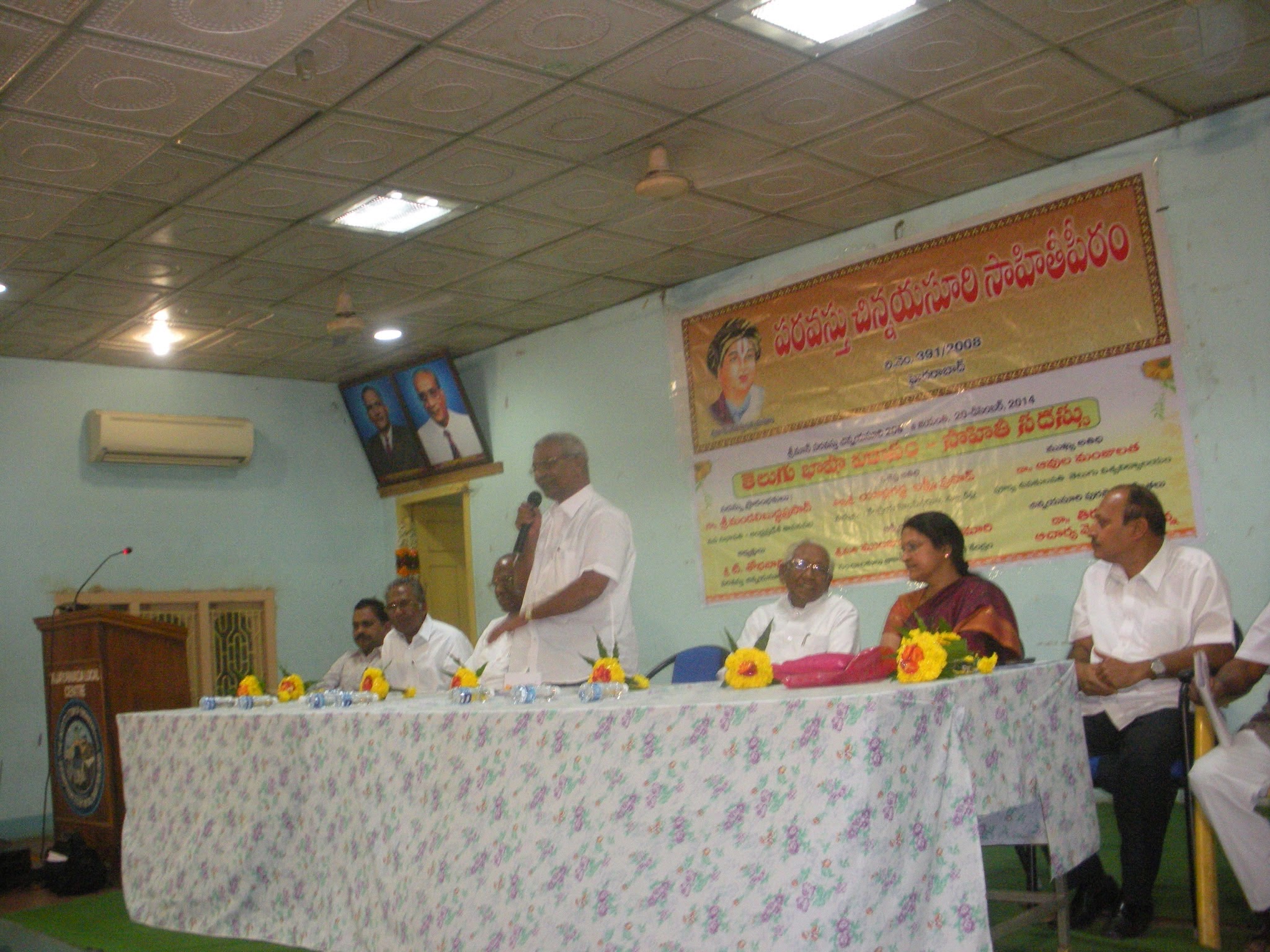 ← విజయవాడ లో పరవస్తు చిన్నయ సూరి సాహితీ పీఠం ఆధ్వర్యం లో చిన్నయసూరిగారి 208 జయంతి సందర్భం గా 20-12-14 శనివారం జరిగిన తెలుగు భాషా వికాసం సదస్సు దృశ్యమాలిక