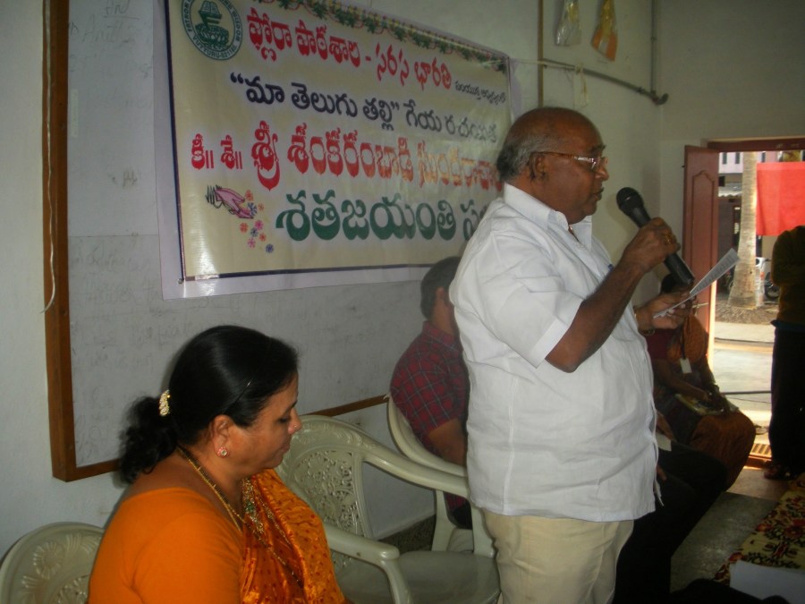 ← మా తెలుగు తల్లి గేయ రచయితస్వర్గీయ శంకరంబాడి సుందరాచారి గారి శత జయంతి సభ సరసభారతి, ఫ్లోరా స్కూల్ సంయుక్త ఆధ్వర్యం లోఫ్లోరా స్కూల్ లో శనివారం 27-12-14