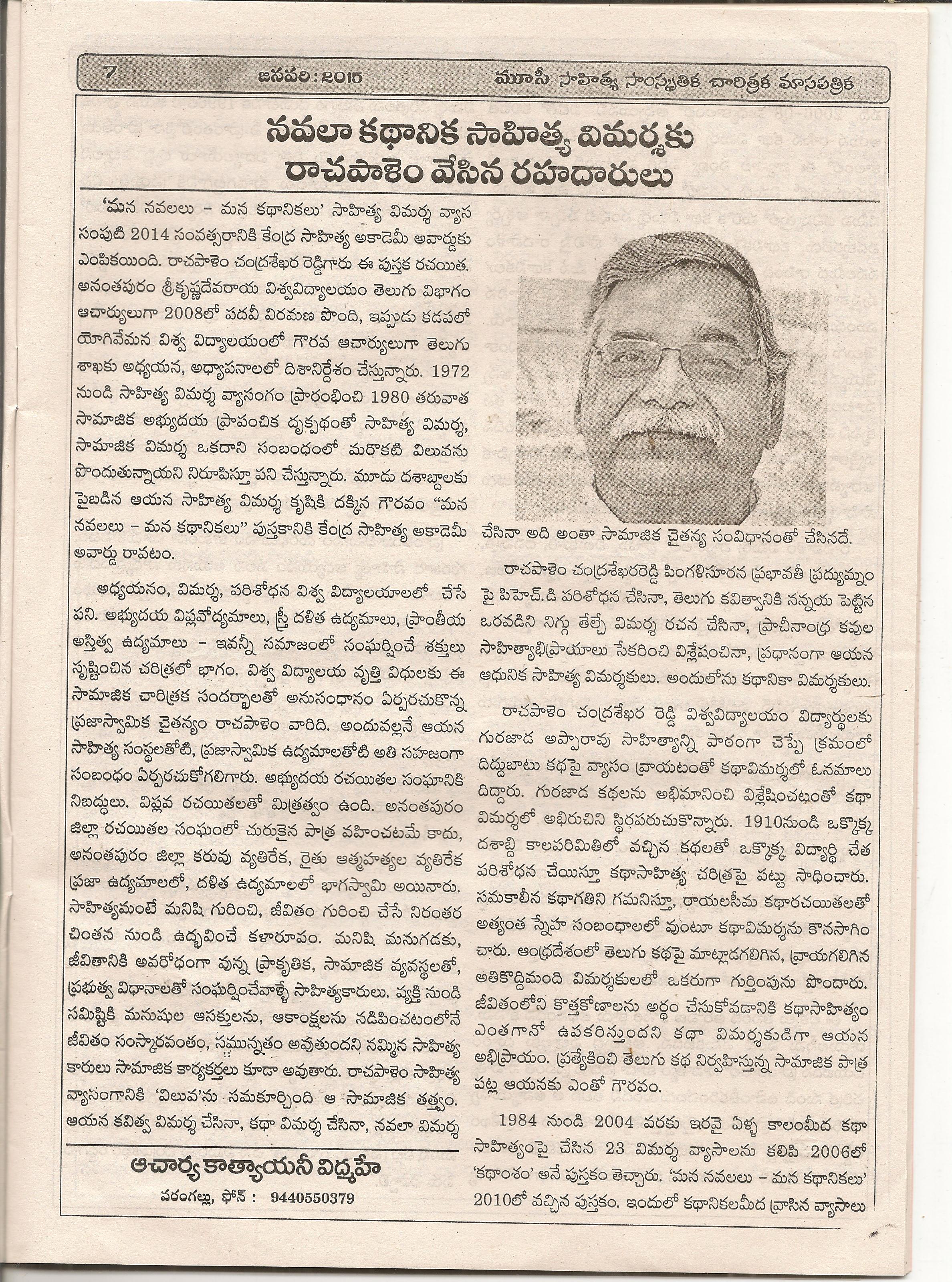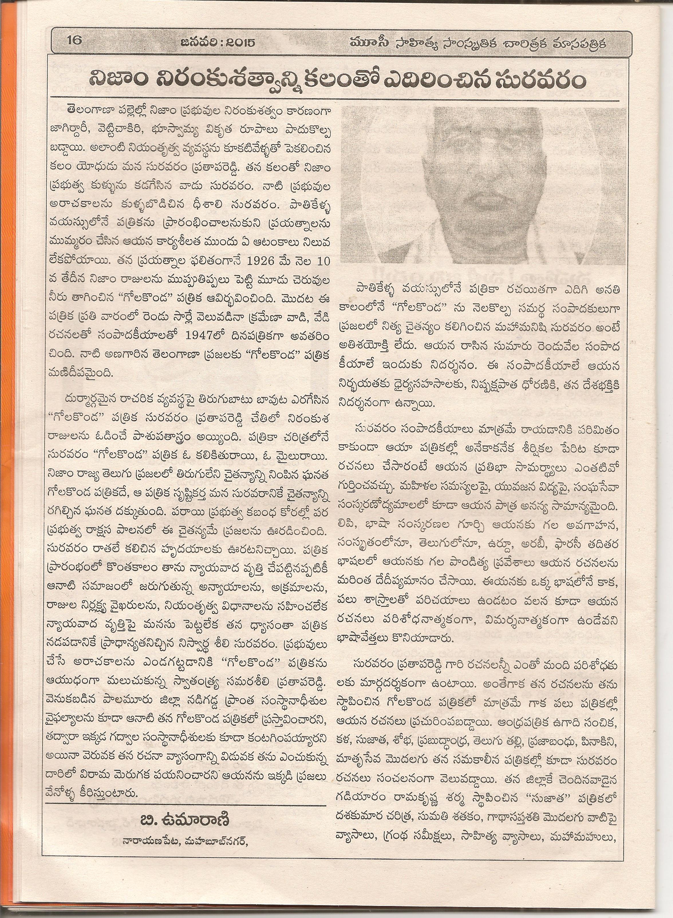 నవల ,కదా విమర్శకు కొత్త రాచ మార్గాలు వేసిన రాచపాలెం – నిజాం తో ఎదిరించిన సురవరం ప్రతాప రెడ్డి -మూసి -జనవరి