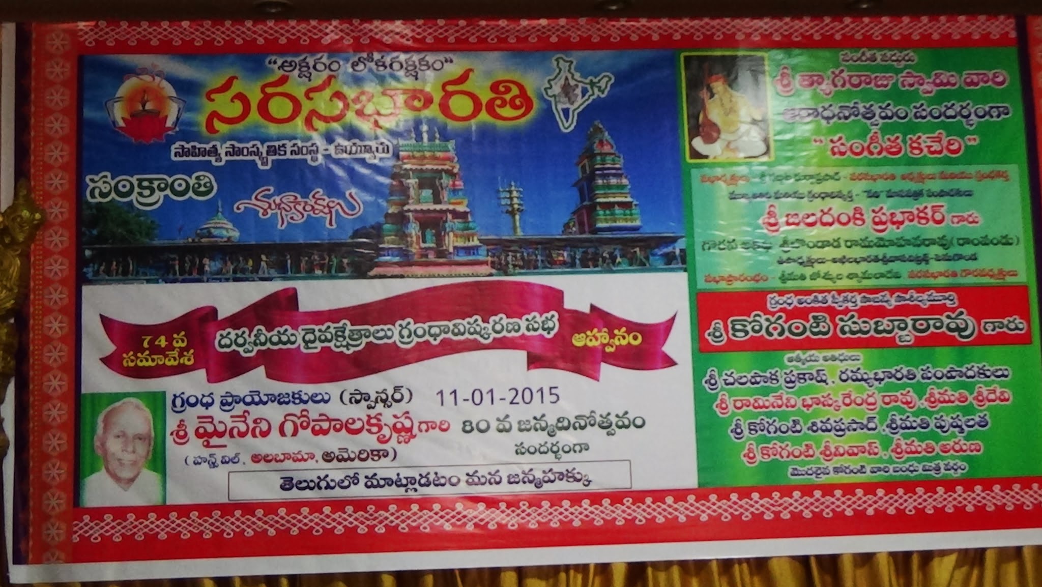 ← జనవరి 11వతేదీ ఆదివారం నాడు సరసభారతి ఉయ్యూరు ఆధ్వర్యంలో దర్సనియ దైవ క్షేత్రాలు పుస్తక ఆవిష్కరణ సభ