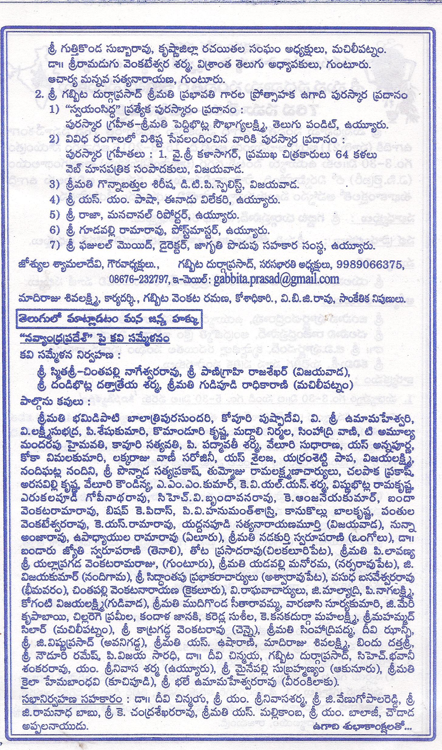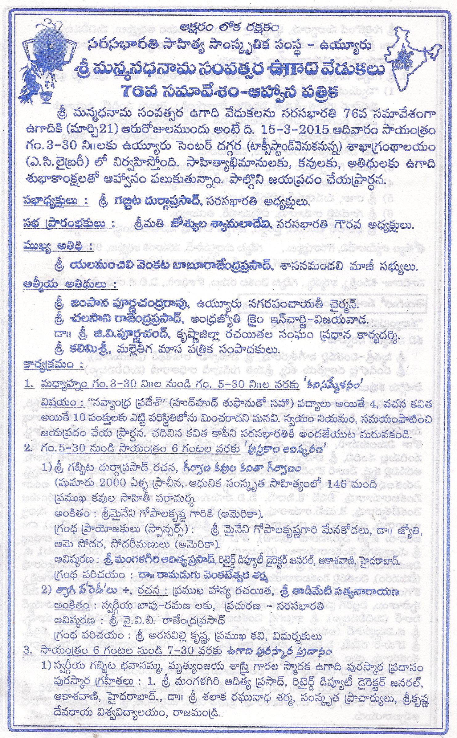 - యాజ్ఞ వల్క్య గీతా.7 వ భాగం.21.12.25. గబ్బిట దుర్గా ప్రసాద్ ప్రసారమైన అంశం సరసభారతి ఉయ్యూరు