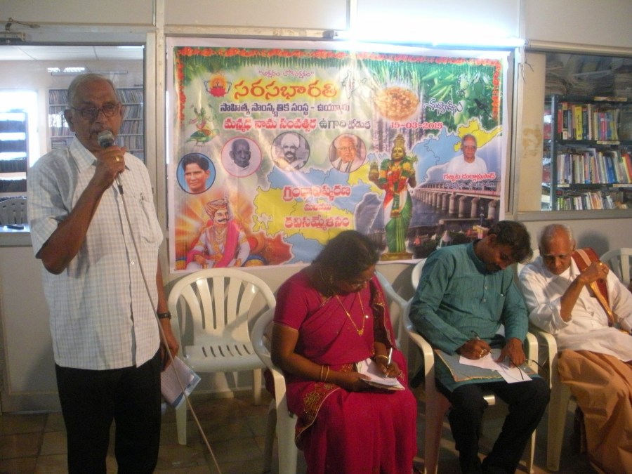 ← సరసభారతి ఉయ్యూరు ఆధ్వర్యంలో 76వ సమావేశం ఆదివారంనాడు (15 – 3 – 15 ) మన్మధ నామ సంవత్సర ఉగాది వేడుకలు, కవి సమ్మేళనం, గీర్వాణ కవుల కవితా గీర్వాణము, త్యాగి పేరడీలు గ్రందావిష్కర్ణ , ప్రముఖులకు సత్కారాలు, పురస్కారాల సభ నిర్వహించబడినది . సభలోని చిత్రాలు తిలకించండి .
